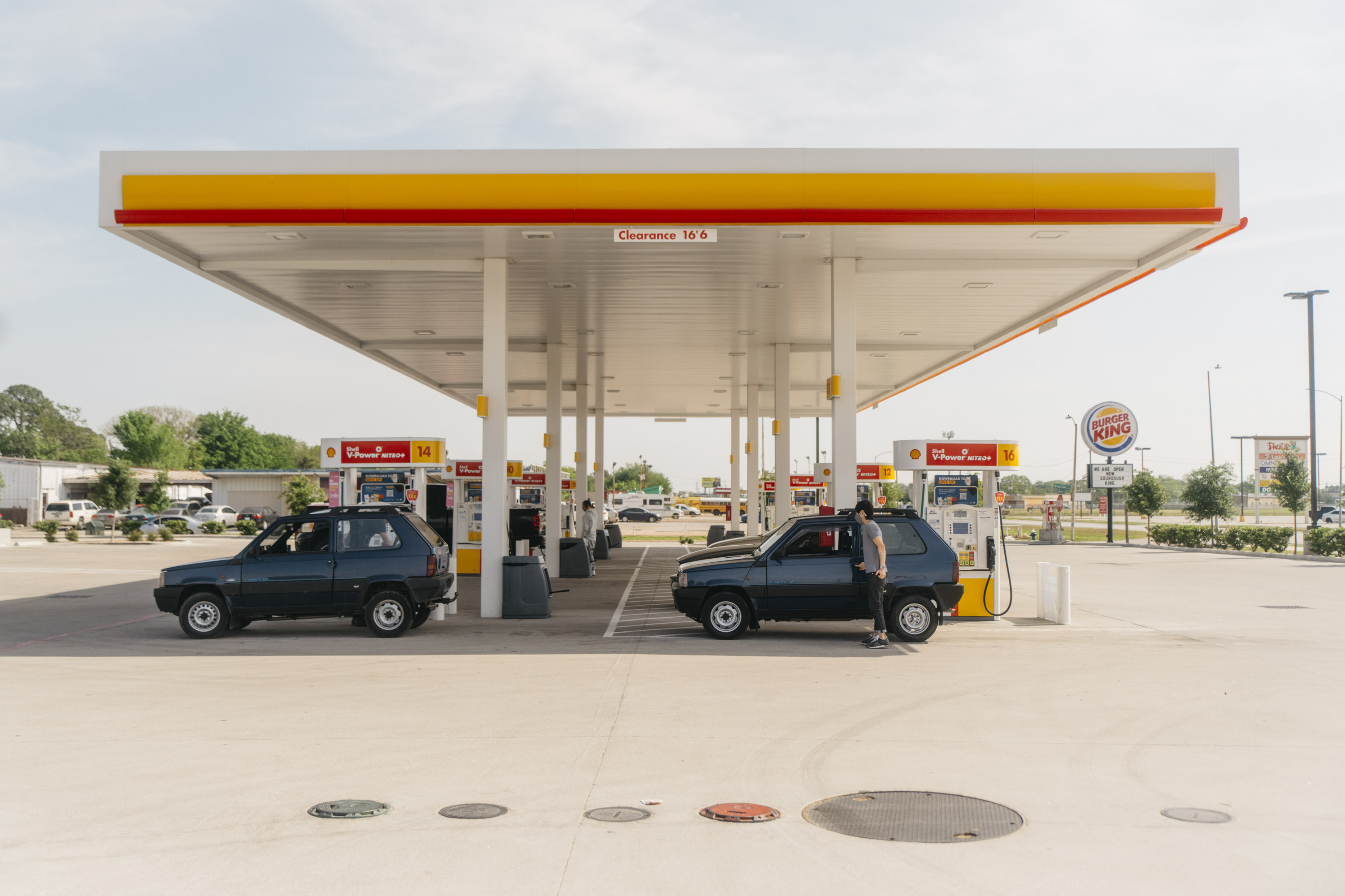 Eventually, we filled them with fuel, washed the windows, and took them onto Houston’s 610 loop for a 20-mile trek across town. We had no issues, but briefly touching 125 kph (78 mph) on the freeway on unknown 145-width tires felt sketchy. Once we were back on surface streets, that high-speed jaunt had given me newfound confidence to wring out the little Panda.