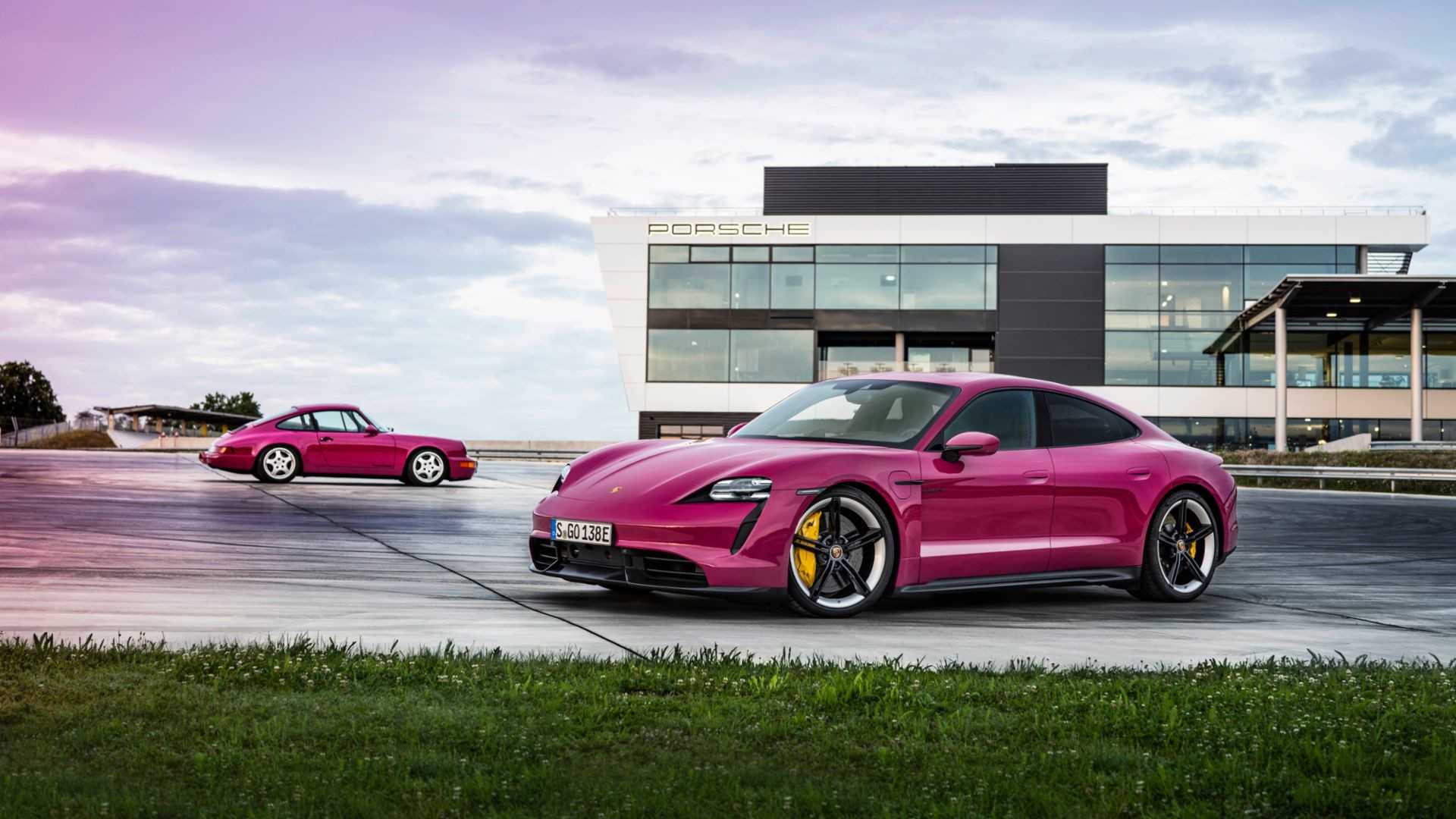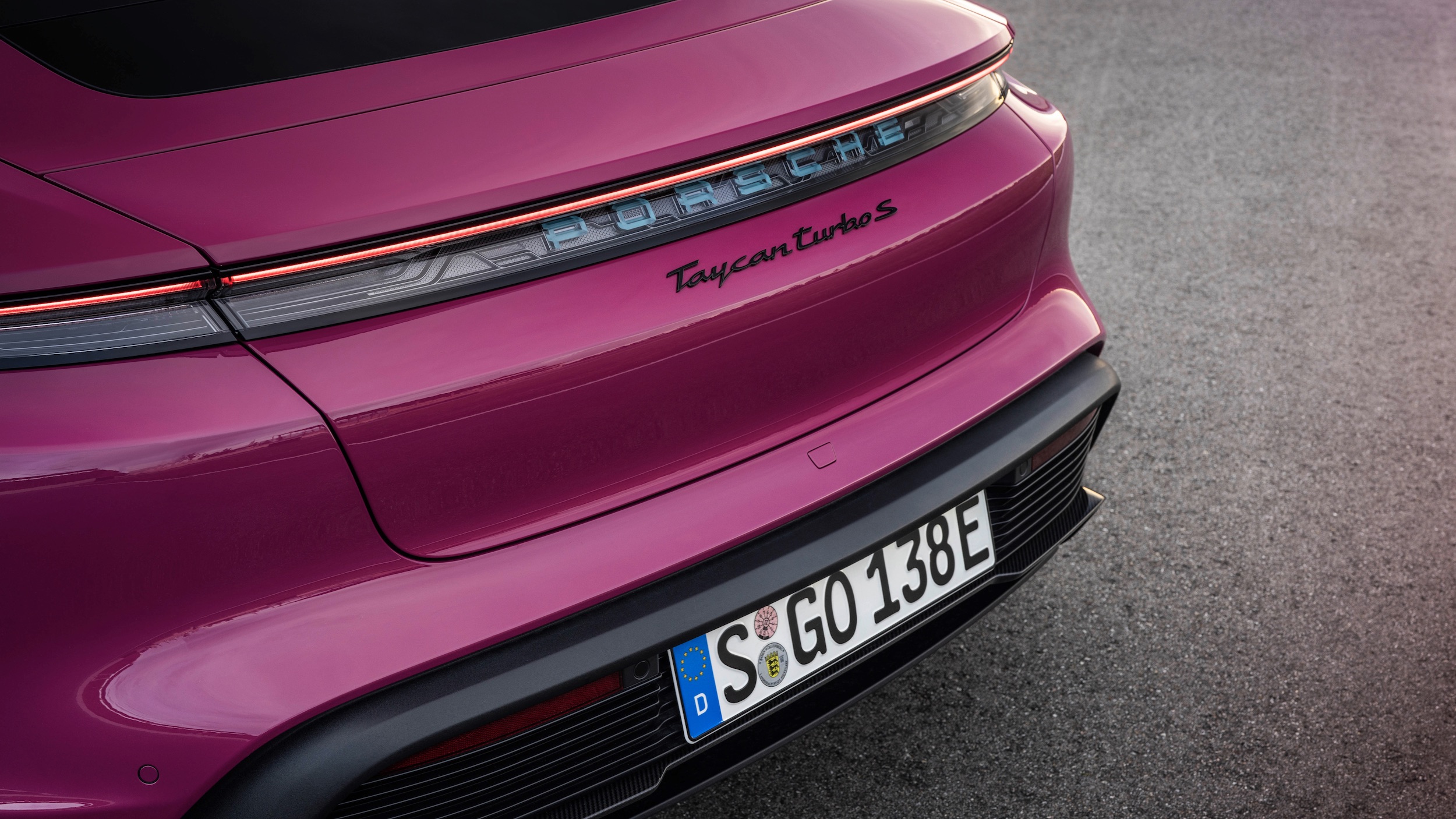 Perhaps most striking of the 2022 updates are the new paint options. As pictured, the Taycan looks resplendent in Porsche’s classic Rubystone Red, even if to the untrained eye it looks to be more of a pink. It’s one of a selection of classic colors available from Porsche’s back catalogue, which got very colorful and experimental in the 1990s. Other eye-popping shades include Acid Green, Riviera Blue and Viola Metallic, with 63 shades available under the Paint to Sample scheme in addition to the Taycan’s 17 standard colors. Going further, the Paint to Sample Plus option lets owners specify virtually any color they desire, even matching their new Porsche to a favorite bowtie, nosering, or other accessory.