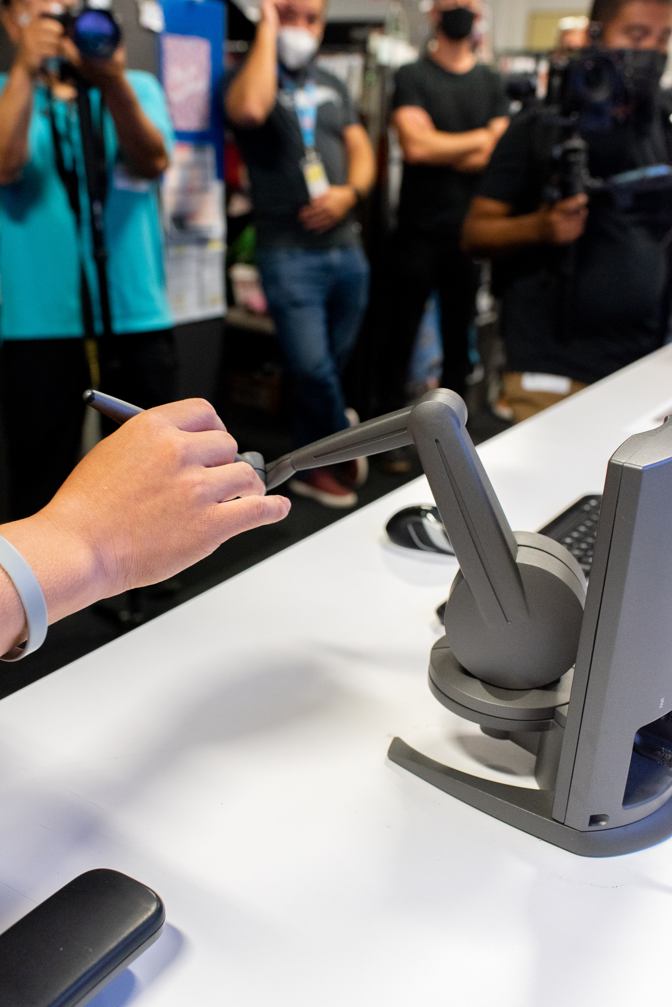 From there, the modeler “sculpted” the car using digital clay on a pen-tool carving rig that was originally built as a surgery trainer for doctors in medical school. The tool has motors at each hinge point that allows the pen to offer feedback when “touching” the model. Because of this, it is possible to run the tool along the “surface” of the design and there’s resistance offered when sliding across edges or lips. This means the carving rig offers both the tactile aspects of clay development and the digital format of modern computer-aided design. Because the finished product is a CAD design, it can be sent directly to the prototyping department when the modeler is finished with the 3D computerized model.