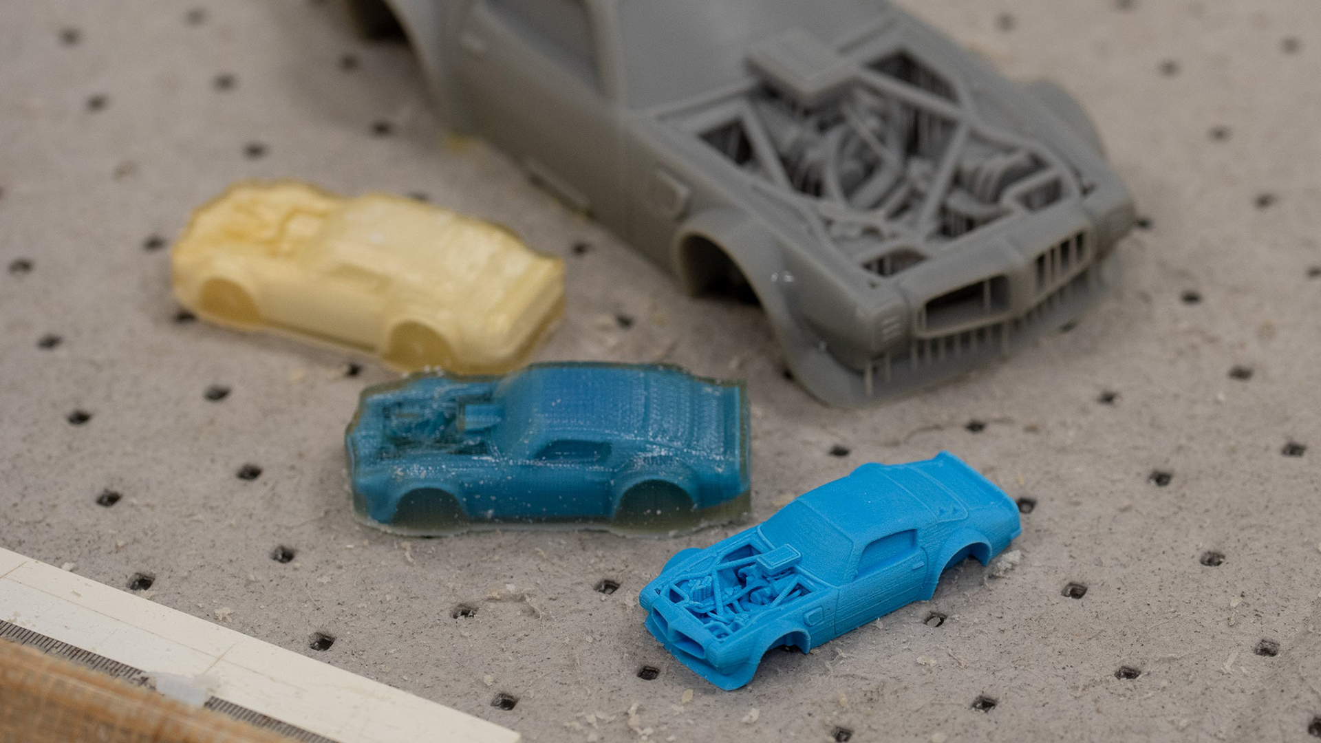 Once the prototype builders received the 3D CAD models, they printed them using hardened resin on an array of different 3D printers and in various levels of complexity. Initial prints were solid—this was just to confirm the model car could actually replicate the level of detail and could get the donor car’s overall “look” right. The model could be printed larger, as well, to get a better look at any details that might have needed to be tweaked or changed.