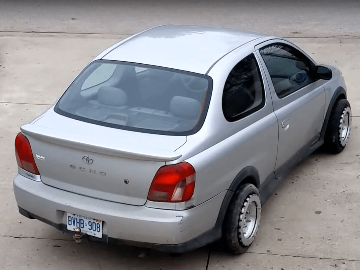 How is the car controlled? Clearly, the regular steering, throttle, and brake inputs wouldn’t be enough to maneuver the car around the way it moves here—rotating, crabbing, and driving in a regular manner. And what’s powering them? The Toyota Echo they’re strapped to is front-wheel-drive, yet all four wheels are clearly moving independently. Are there electric in-wheel motors? How large are they, if the car is generating 24,000 lb.-ft. of torque, as Liddiard claims