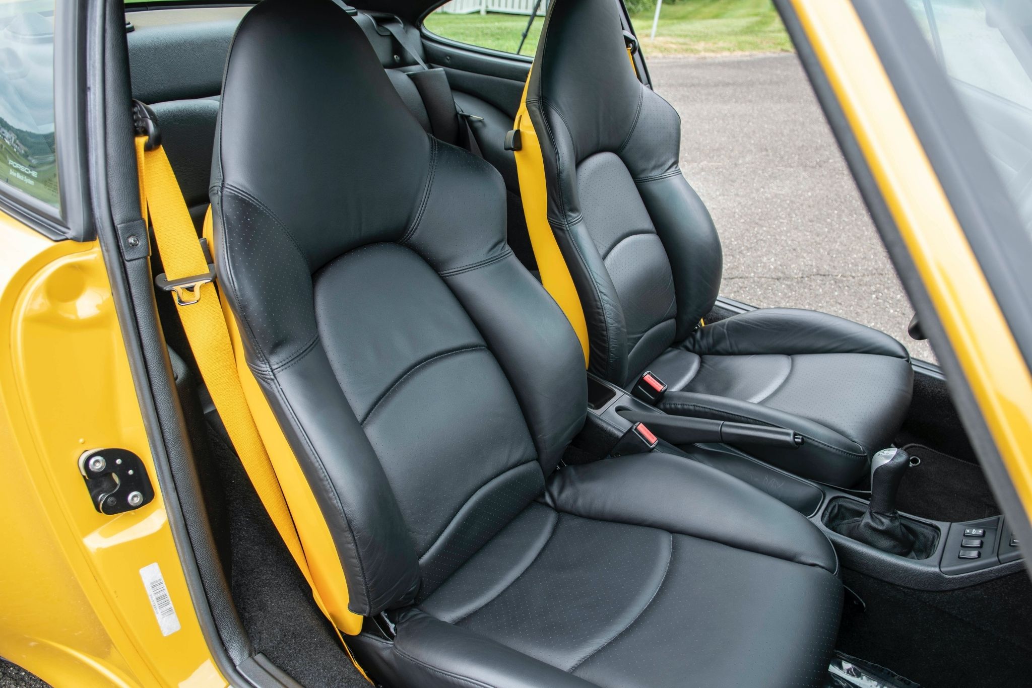 Detailer extraordinaire Larry Kosilla with Ammo NYC completed a full cleaning back of the car after it left Speed Sport Tuning, cataloging the process on his YouTube page. The Porsche has been cared for like a beloved pet and was pretty clean to start, and Kosilla showed it only had light swirls and scratches on the paint. Using a yellow pad and polish, he shined it up, revealing the full glory of its Speed Yellow finish and Aerokit bodywork. Inside, the sport seats have color-coded seat backs and are upholstered in black leather; matching yellow seat belts keep the passengers in place.