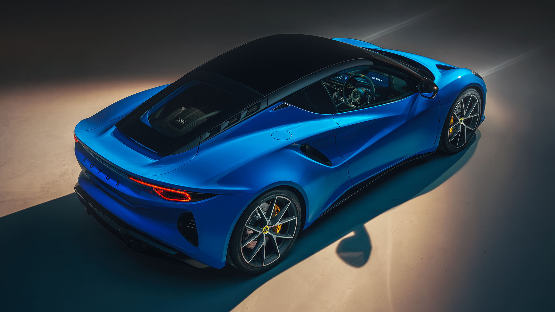 Six exterior colors will be offered at launch (Seneca Blue, Magma Red, Hethel Yellow, Dark Verdant, Shadow Grey, and Nimbus Grey) along with seven interior colors (red, black, gray, and tan Nappa leather, in addition to black Alcantara with either red, yellow or gray stitching). There will also be an exhaust finished in titanium, a gloss black front splitter, front bumper air blades, side sills, and rear diffuser, and a 10.25-inch center infotainment touchscreen. The optional Drivers Pack gives you either Tour or Sport suspension with Goodyear Eagle F1 Supersport tires or Sport suspension with Michelin Pilot Sport Cup 2s. The automatic transmission can be had for an extra $2,150.