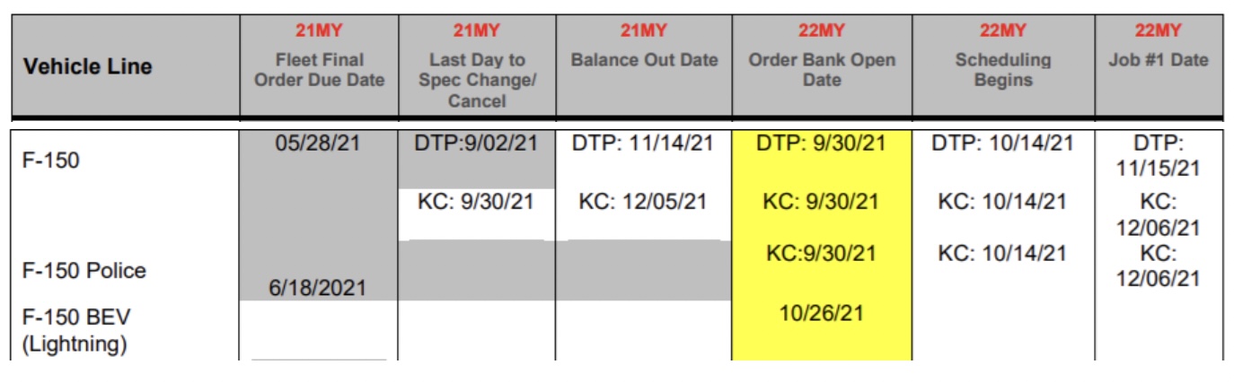 What’s adding the most weight to this report is a screenshot from a Ford dealer order base shared by @Pioneer74. There, we see “10/26/21” listed in the “22MY Order Bank Open Date” column. We’ve reached out to Ford for comment on this but have not heard back at the time of publishing.