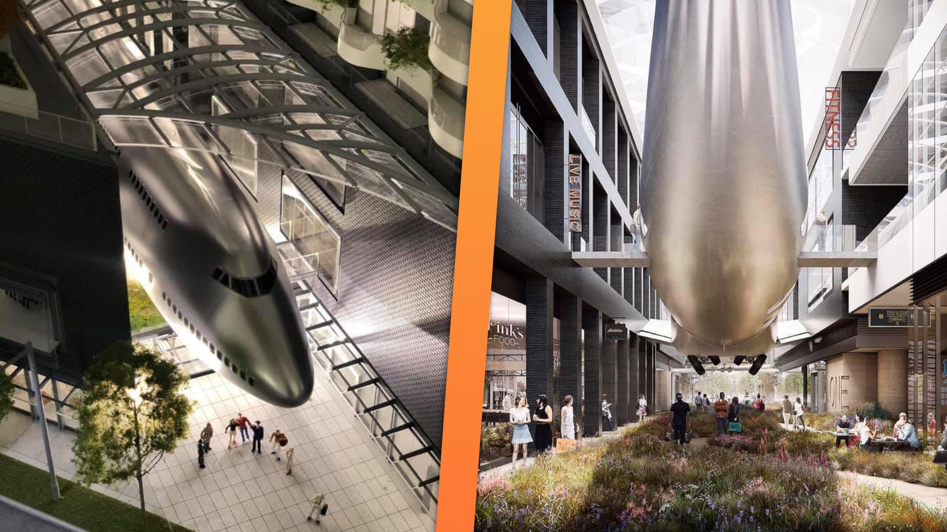 The interior of the plane will be stripped entirely and repurposed, and is expected to be used as a lounge and office area. As reported by MSN, the three-story retail podium surrounding the plane will feature a live music venue run by industry stalwarts Live Nation and a Trader Joe’s grocery store, among other tenants.