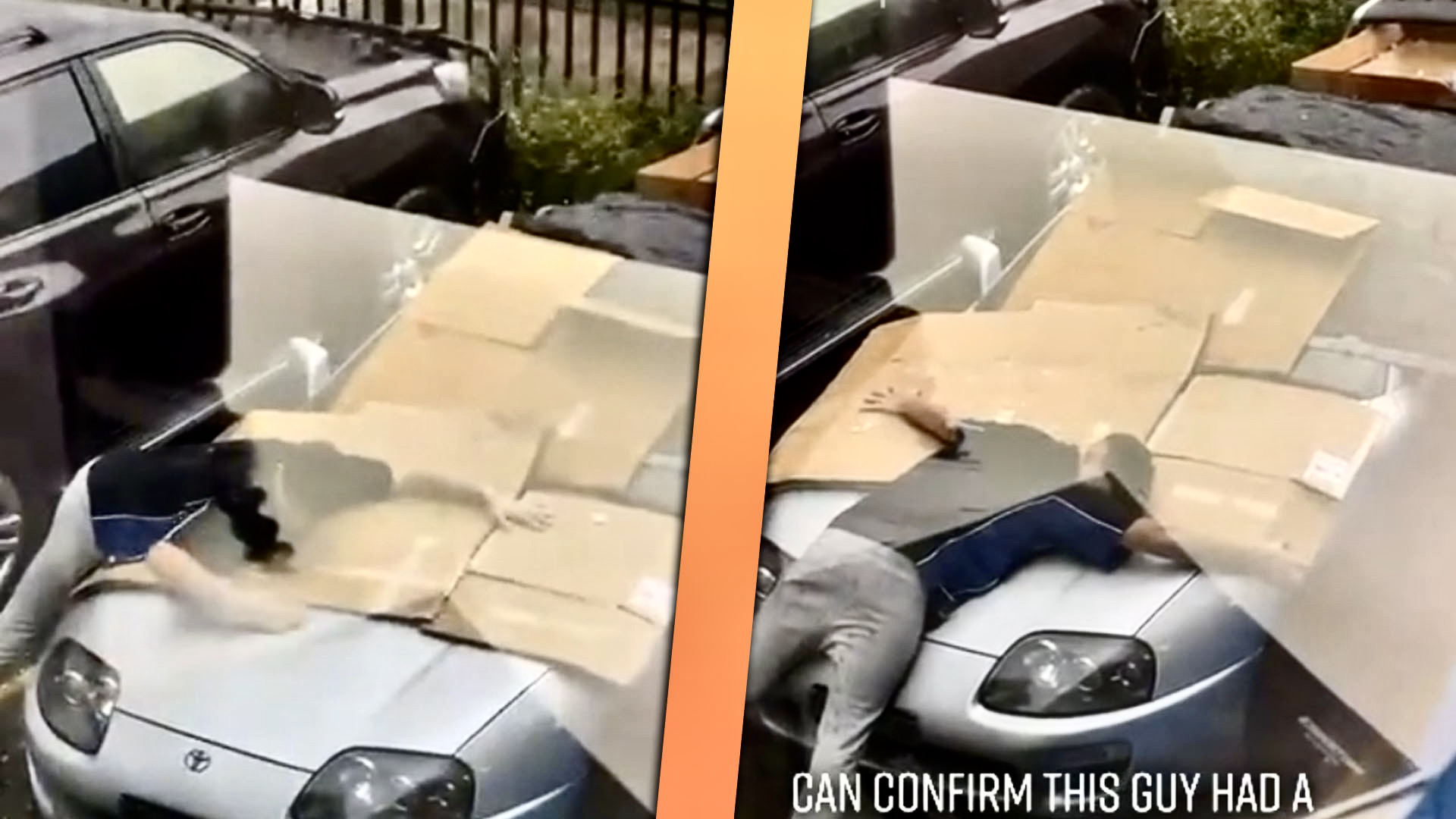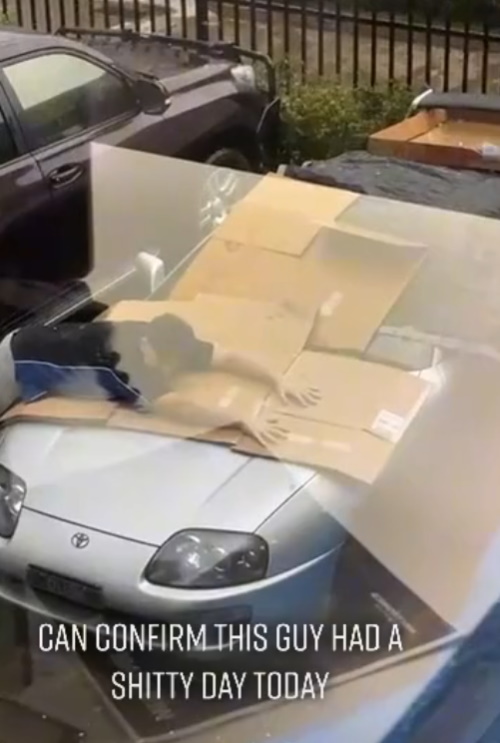 If you can’t do that, well, you might be in trouble, as this Australian Supra owner on TikTok recently found out. After failing to locate a suitable structure to defend what appears to be a collectible Mark IV Supra from a raging hailstorm, he was forced to use what he had available to him to protect his precious ride: a blanket, some cardboard, and his own body, of course.