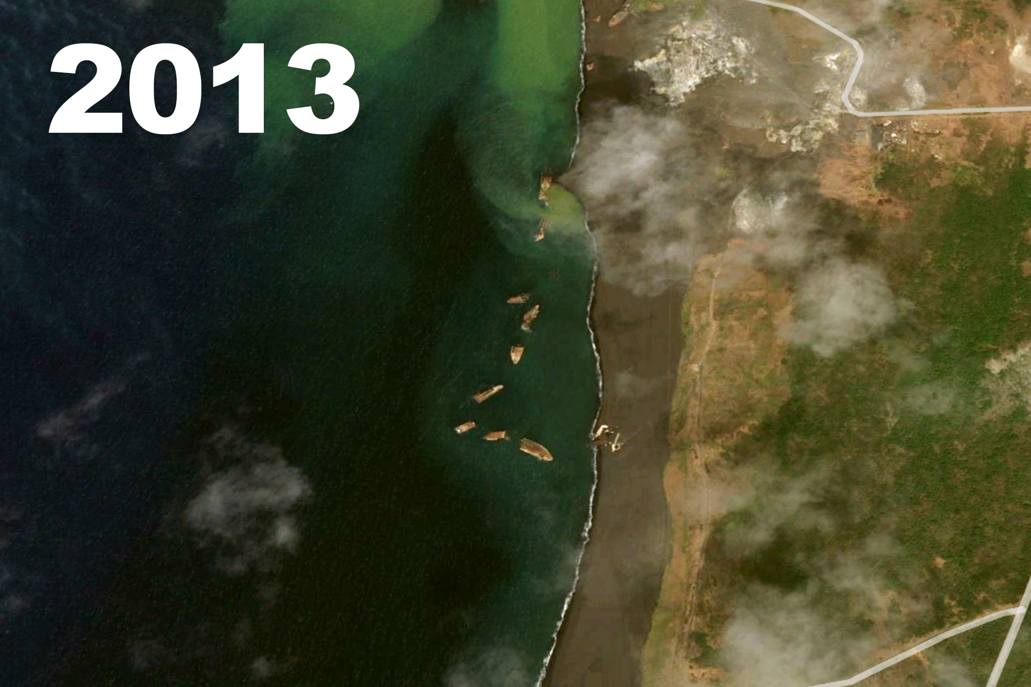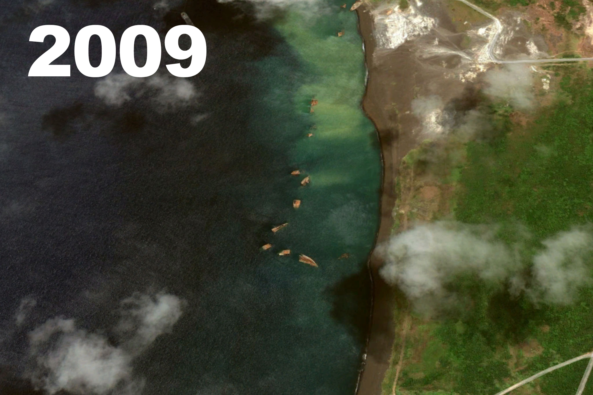 Below, you can see their progression out of the water and onto the shore—or rather, the progression of the shoreline out into the ocean. The first image was taken back in 2005, while the last picture was snapped just five months ago.
