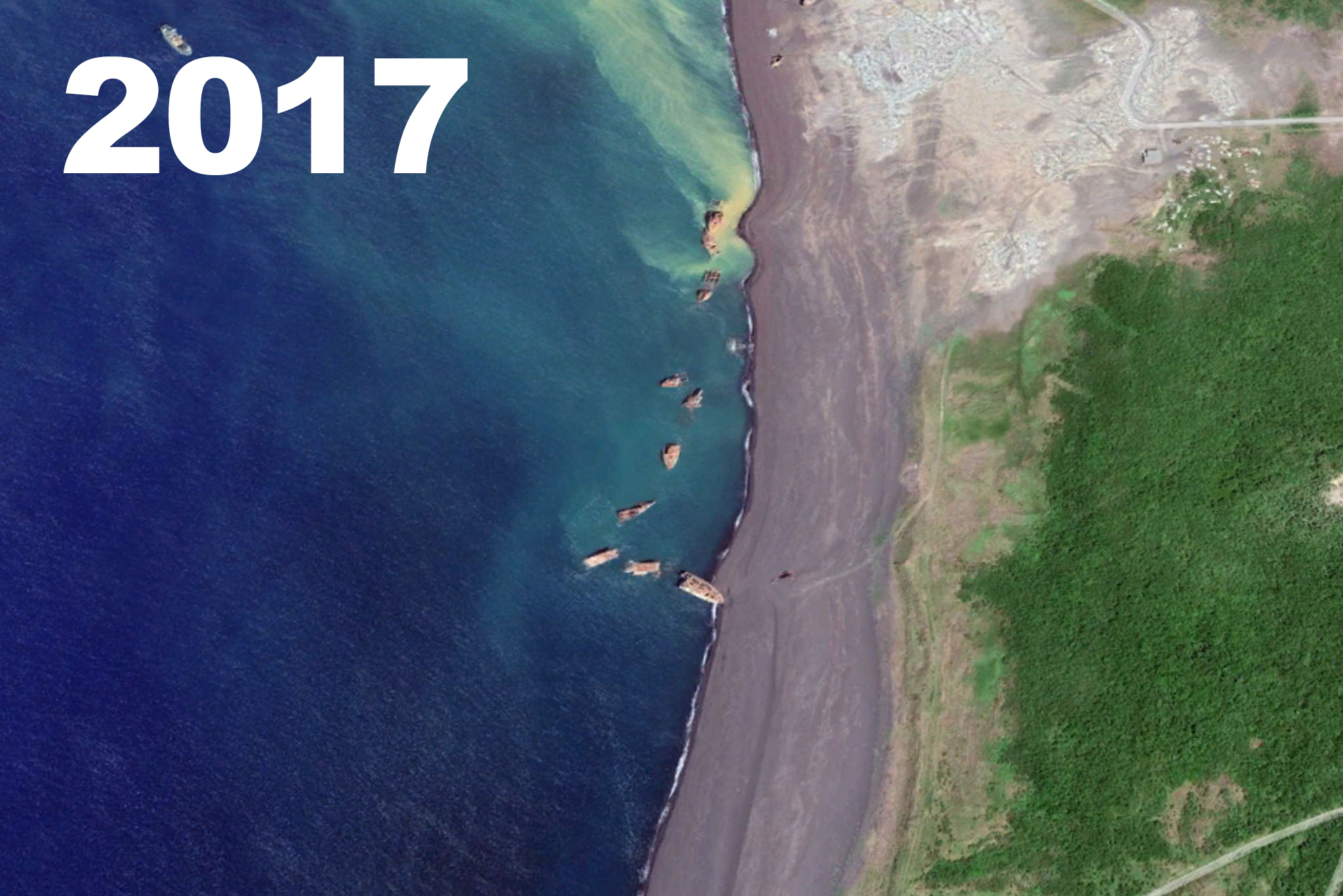 The war, of course, is very much over. But plate tectonics never stop. This month, a recent burst of seismic activity on the island, now known as Iō Tō in Japan, has lifted numerous WWII shipwrecks from the ocean, leaving them littered across a new black sand beach like ruins from Planet of the Apes. Three-quarters of a century after the fighting ceased, ghosts of the conflict that defined the modern world are still emerging from the blue waters of the Pacific.