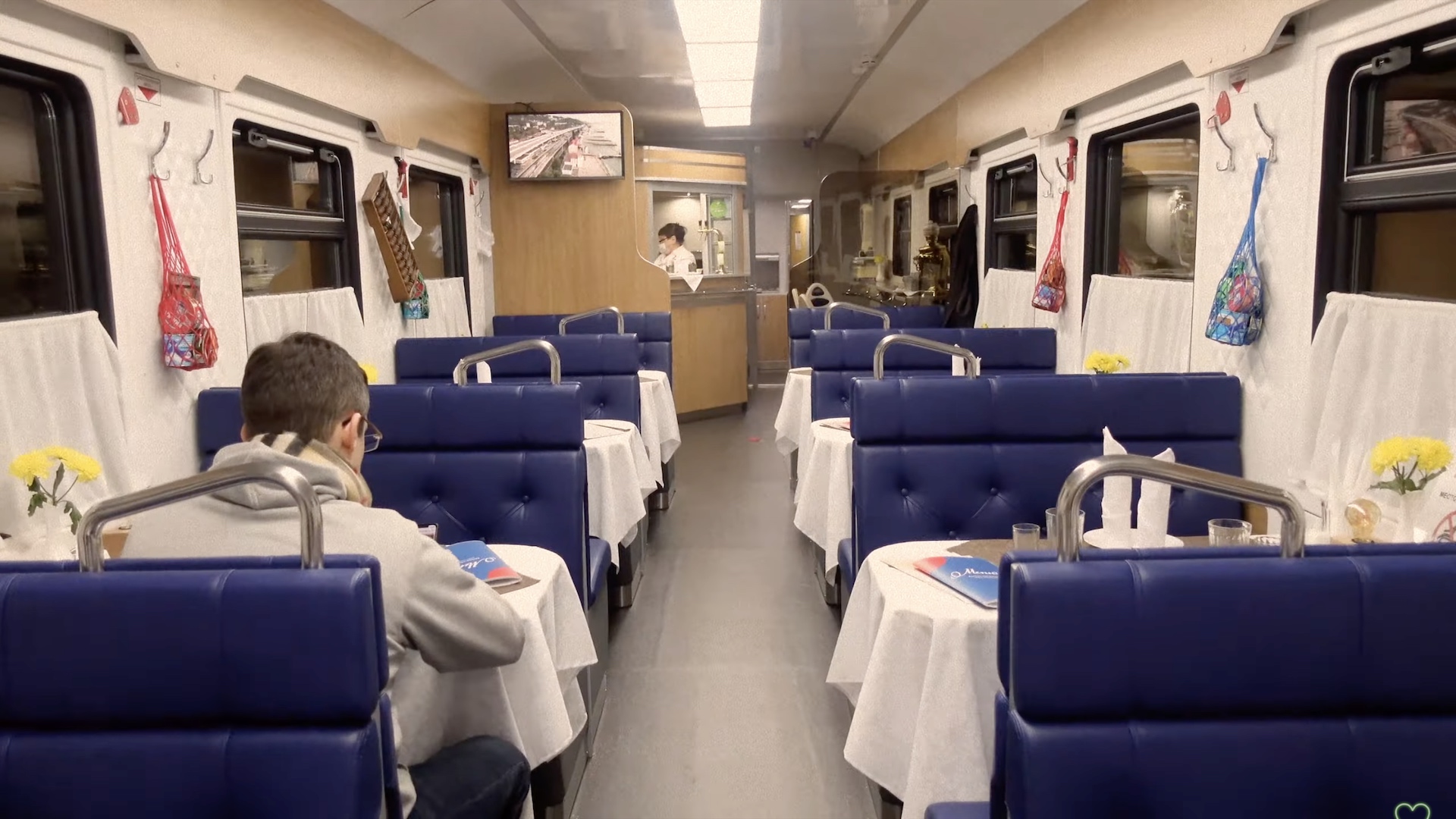 Its onboard store sells Soviet souvenirs such as slippers, pins, and glassware, and the dining car prepares local Russian and Abkhaz specialties (the full menu is online if you can swing with the Cyrilic). Extremely ’70s-looking fare is served by waitstaff in period-appropriate attire, shown in photos to consist of red dresses, lacy white aprons, and a small kokoshnik headdress. Meals also offer an opportunity to read reproduction newspapers, such as reissues of trade paper Gudok from 1980.