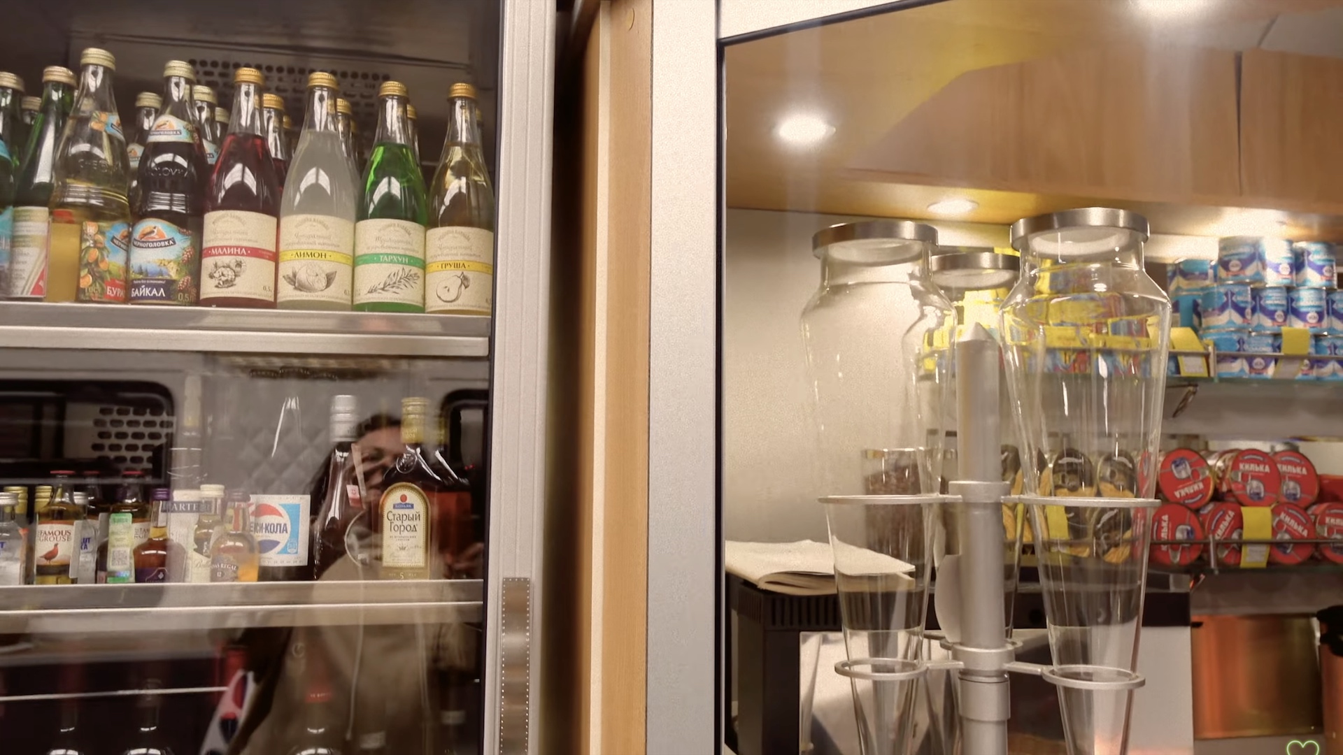 The train’s corridors are prettified by period patriotic posters promoting the U.S.S.R.’s athletic and scientific achievements, along with tapestries of resort town landscapes. First-class sleepers (known as “SV” to Russians) are outfitted with reproduction furniture and only the frumpiest of ’70s Eastern Bloc wallpaper, while common areas like coaches and bar cars have retro artifacts such as vintage scales and an old slot machine.