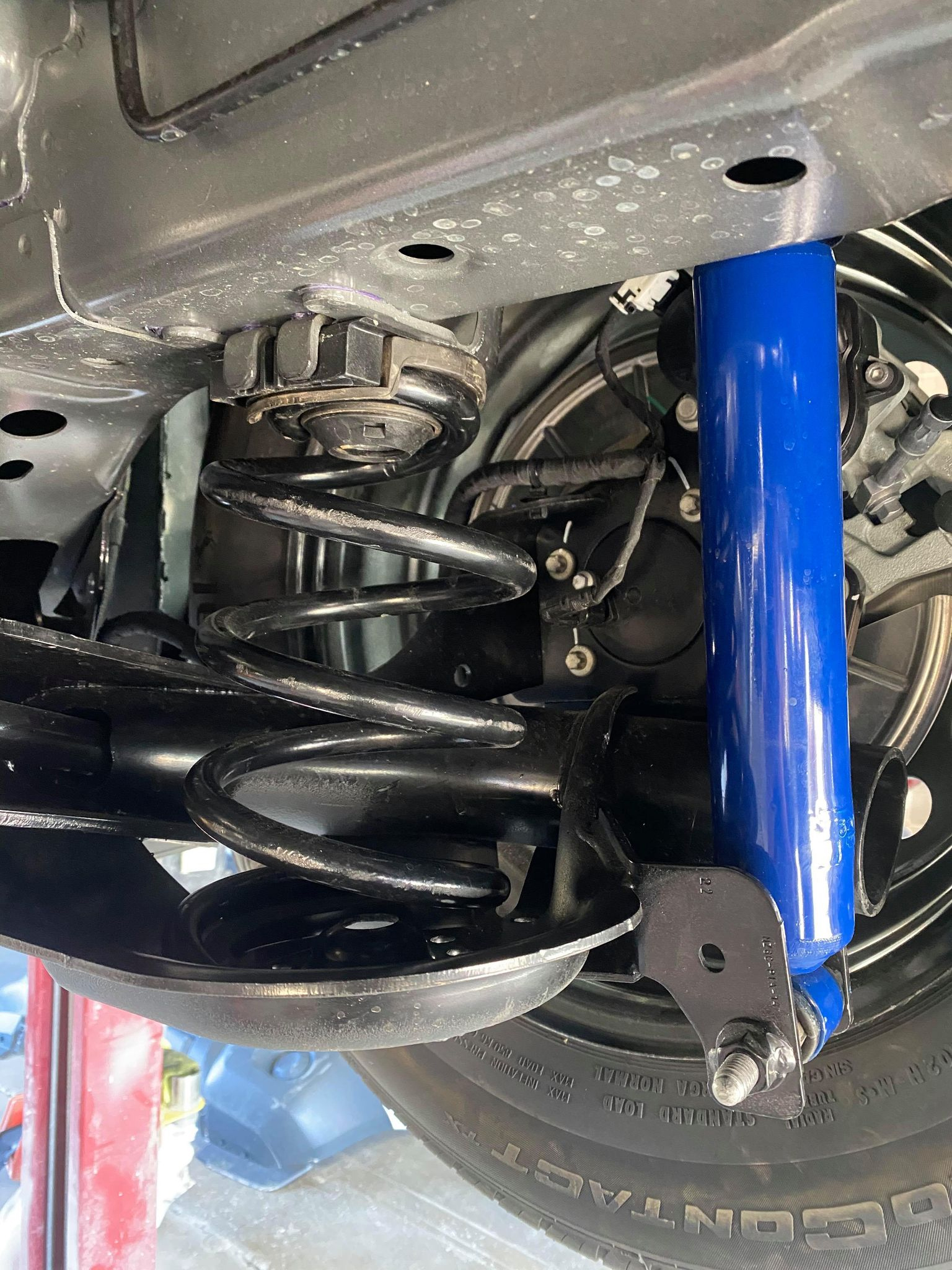 Since no company officially makes an aftermarket lowering kit for the Maverick (yet), Edwards had to improvise. He took some measurements of the Maverick strut assembly and went to an auto parts store. After comparing a few options, he left with a pair of struts meant for a sixth-generation Nissan Sentra.