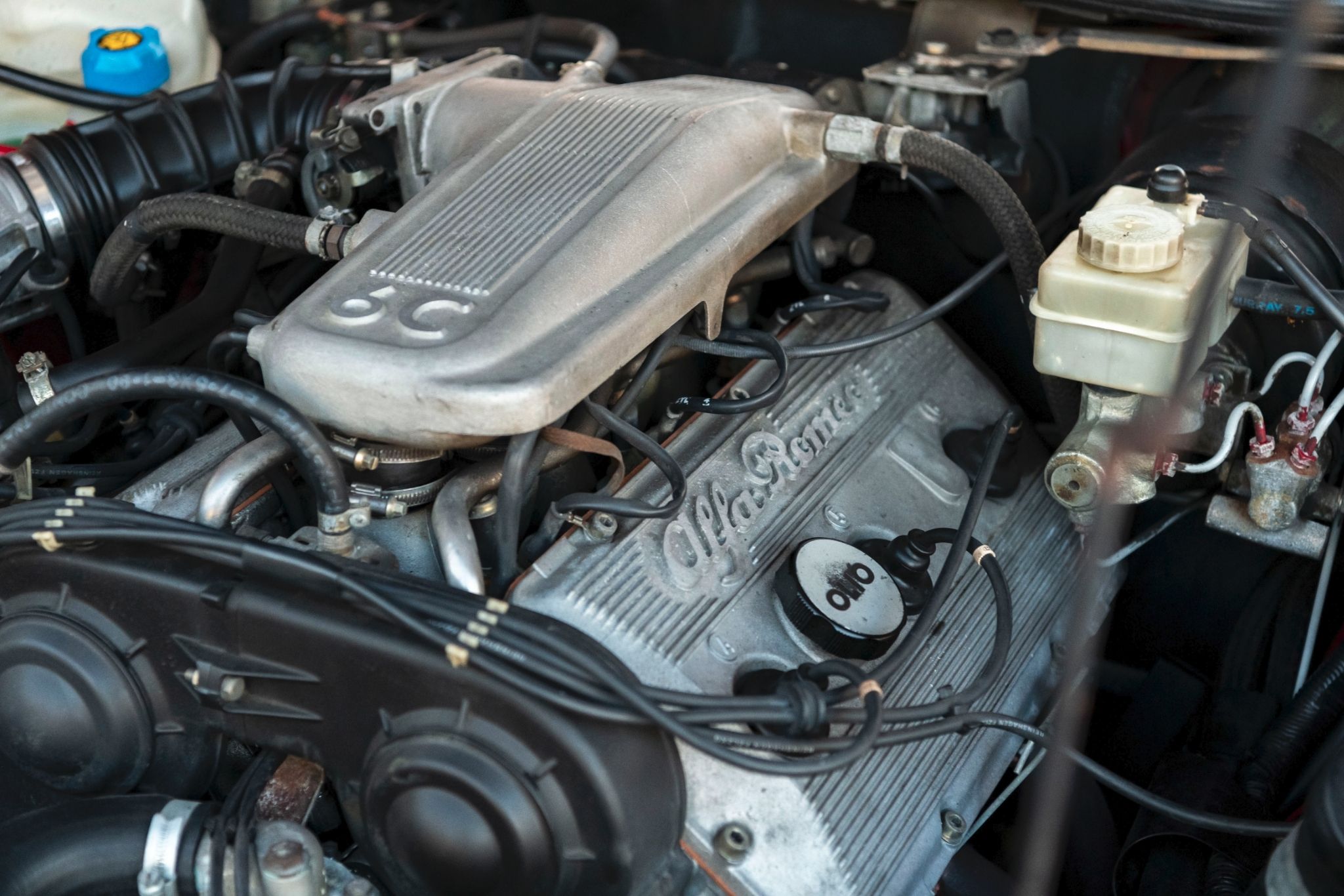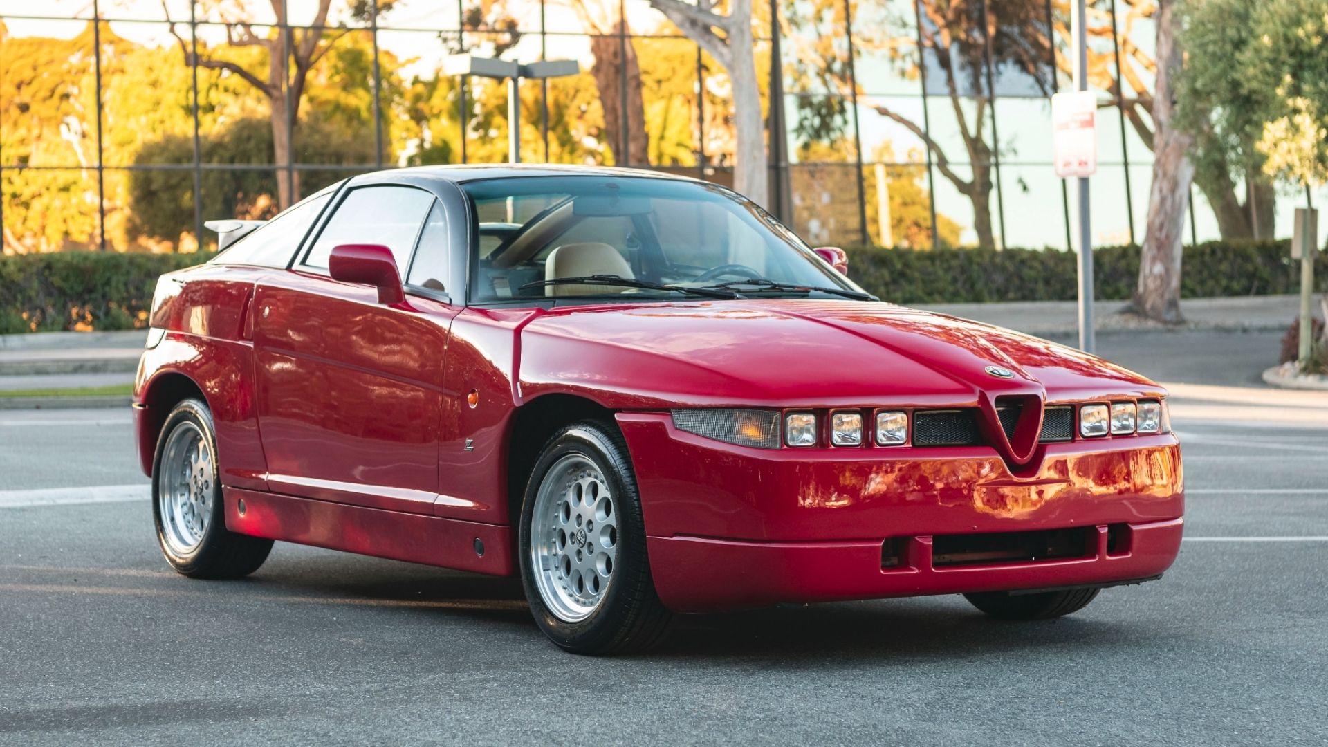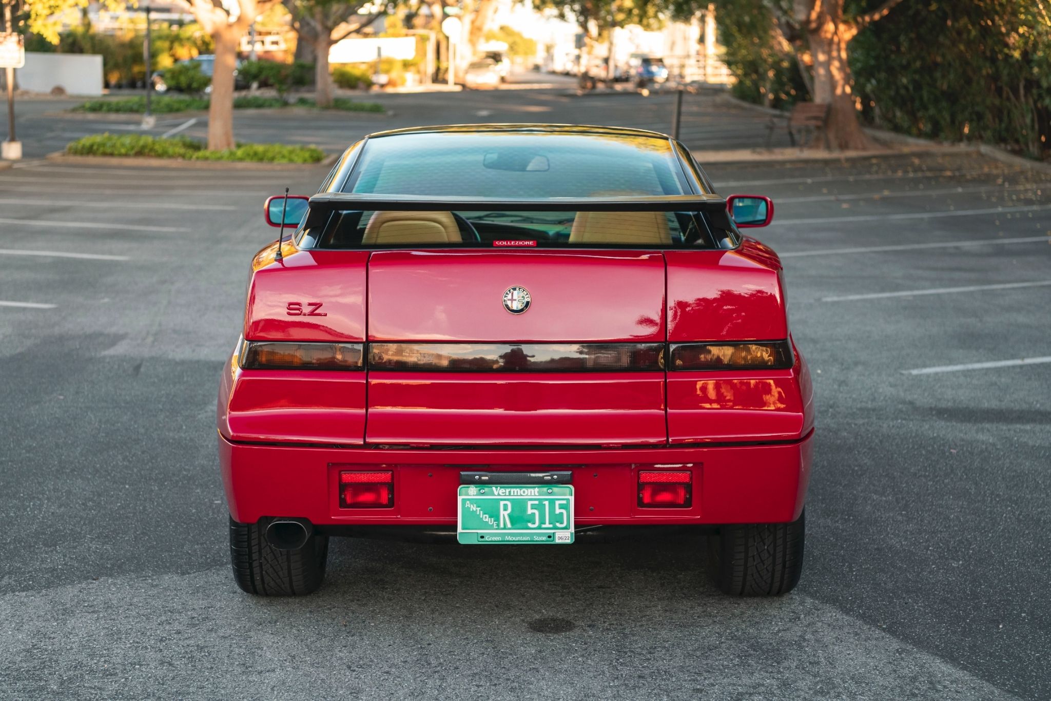 The SZ was built on Alfa’s floorplan for the 75, but the materials and tuning were based on Group A and IMSA racing specs. According to the Lane Museum, cooling for the engine and transaxle were tweaked, the engine received larger intake and exhaust manifolds, and the valves and camshaft profiles were upgraded. In the end, the SZ engine could make 210 horsepower, driving the rear wheels through a five-speed manual.