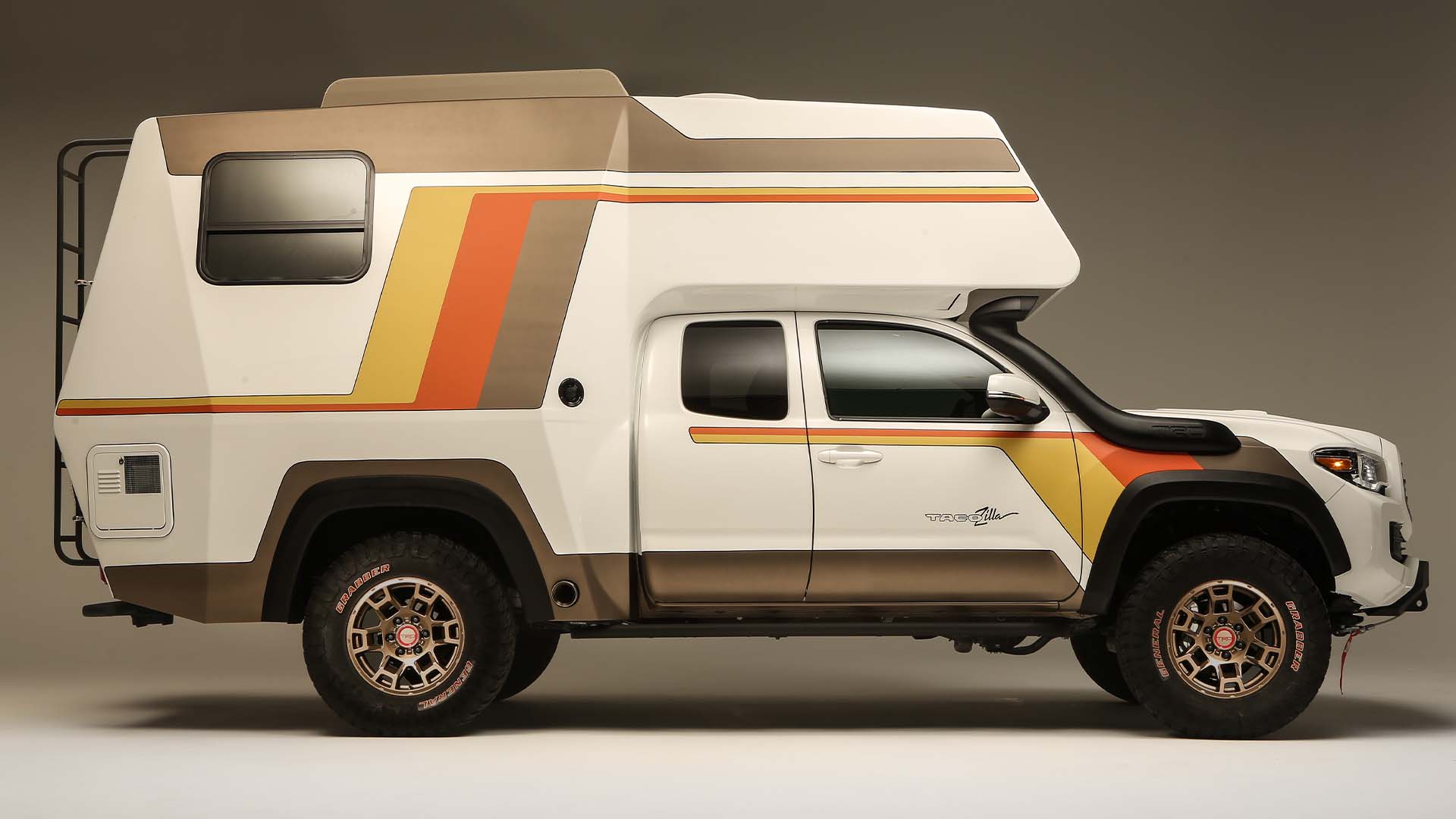 Sure, old-school pickup-based motorhomes sound incredibly niche, but when so many people grew up with rigs like the Toyota Chinook camper, you see how nostalgic they can be. Most of those folks, Toyota included, have key memories of the classic truck with an adventurous spirit, which is what made this “Tacozilla” SEMA creation worth doing. Plus, it fits right in on the show floor with an LED light bar, a winch, and tons of swanky camping gear.