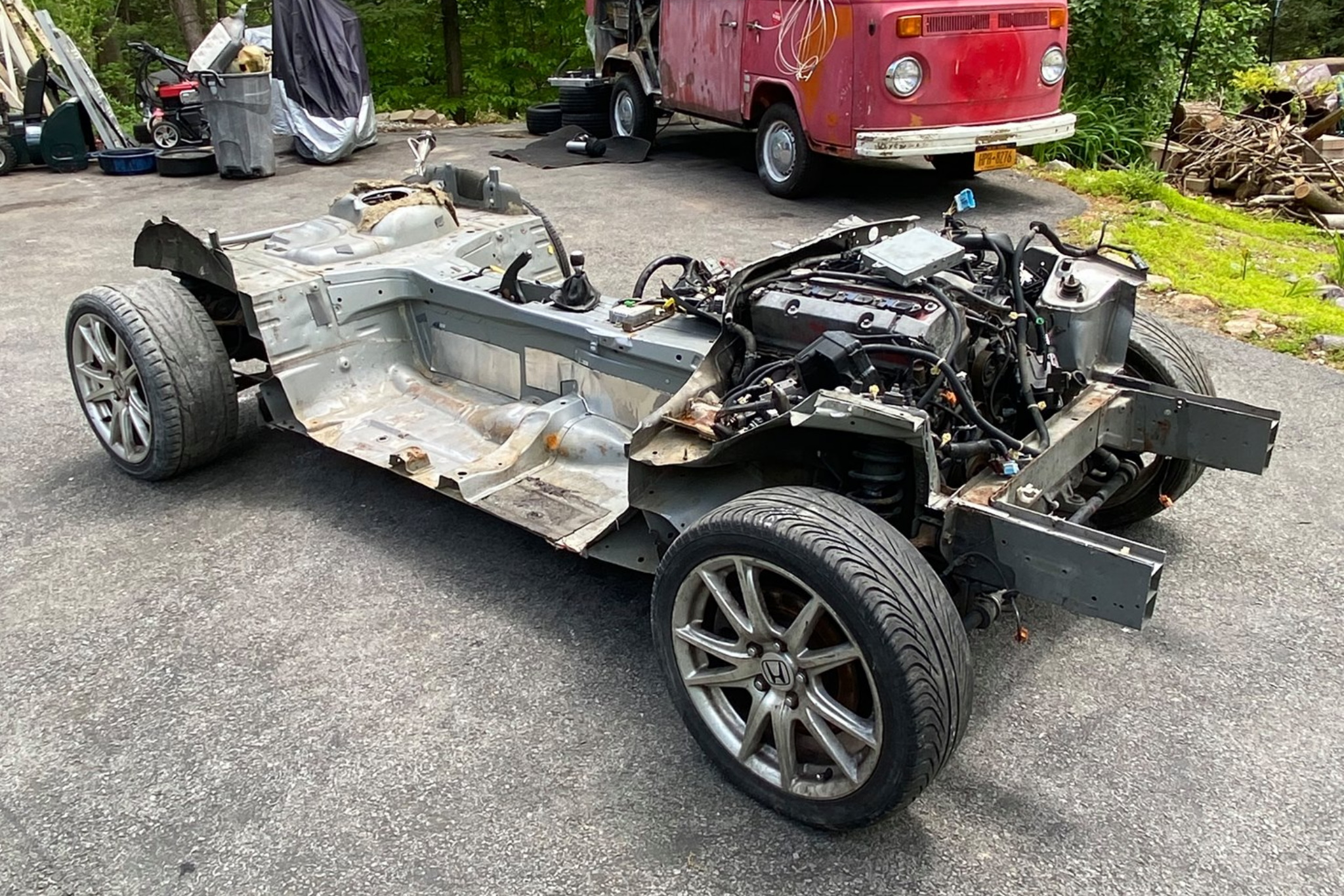 “A good friend that works for a towing company sent me a Snapchat of a wrecked 2005 AP2 S2000 sitting at an impound/repair facility in Connecticut. Immediately my brain started turning, googling dimensions,” Dawson told us. “I went to the Beetle with a tape measurer, and soon I had gathered everything I needed in my mind to be able to pull it off. [The] Wheelbase matched perfectly; 94.5 inches.”