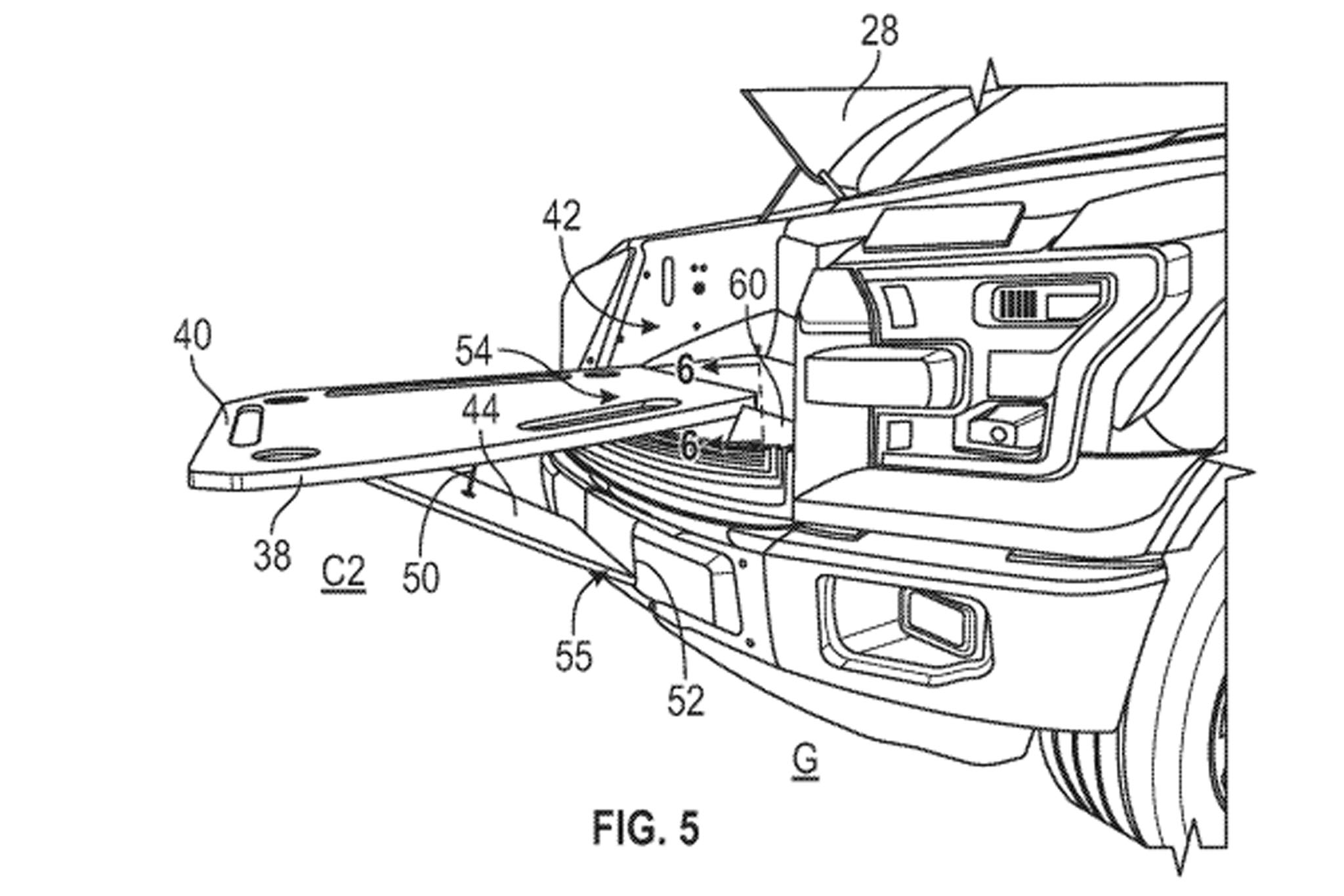 To keep the party going, it appears Ford added a few things to make sure the lights don’t suddenly go out mid-tailgate. First off, the patent details a second charging port for the vehicle located under the hood. Why this would be necessary in addition to the F-150 Lightning’s conventional fender-mounted charger is unclear, but it seems like adding an extra spot to plug in a charger was a priority. Also making sure the truck’s charge status is plainly visible is the aforementioned display mounted above the headlight.