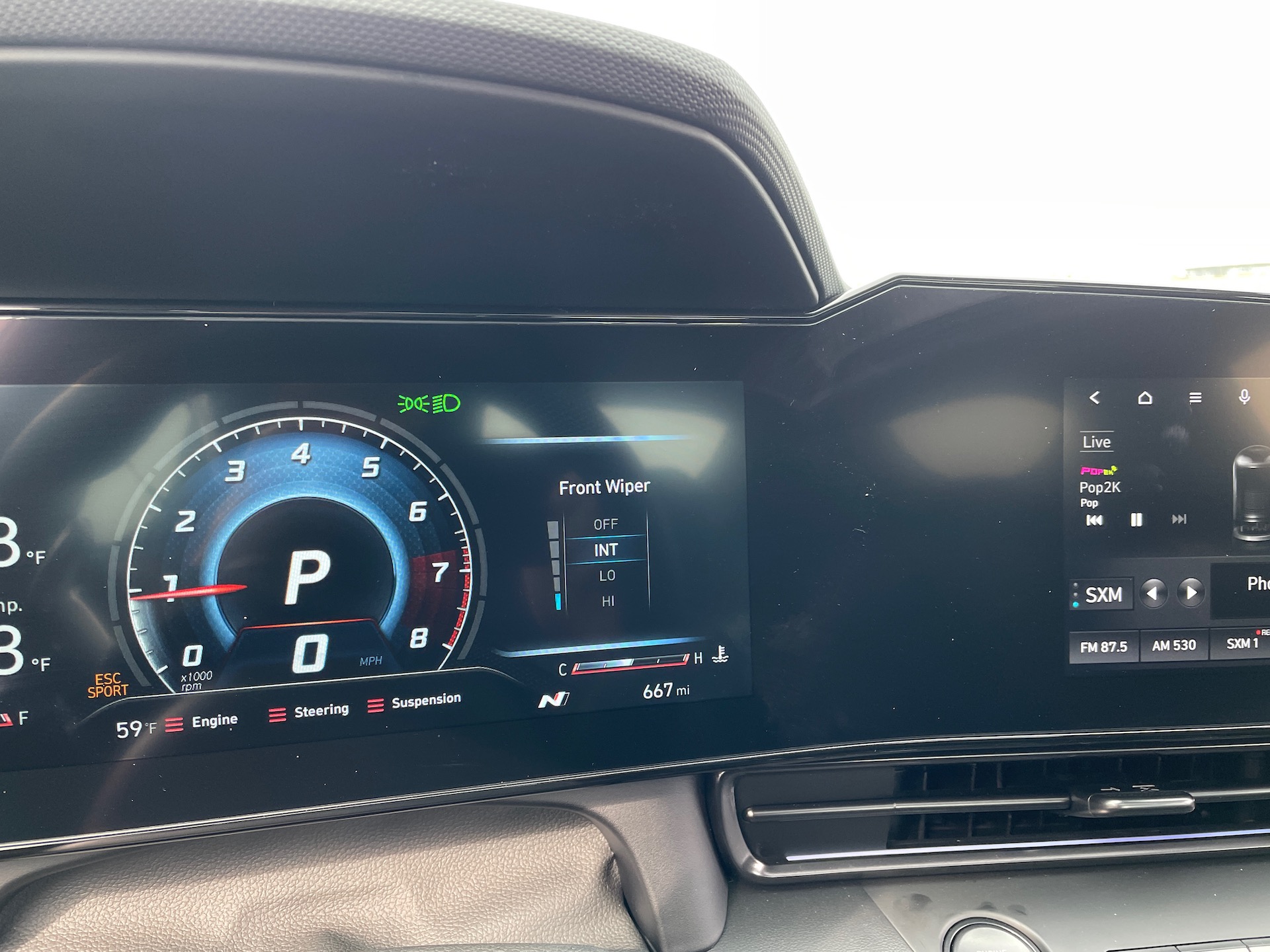 Perhaps even more frustrating than the wiper stalk’s actual operation, however, is that unless it’s absolutely pouring outside and the wipers are moving up and down in front of you in its most rabid setting, it’s always a bit of a challenge to know what speed they’re currently on at-a-glance. Hyundai (and Genesis and Kia), however, has a solution. Instead of just cramming a bunch of hieroglyphics onto the stalk itself (which is kind of dangerous to be looking at while you’re driving in the rain), their systems also throw a popup onto the gauge screen that shows exactly what you’re doing any time the stalk is moved.