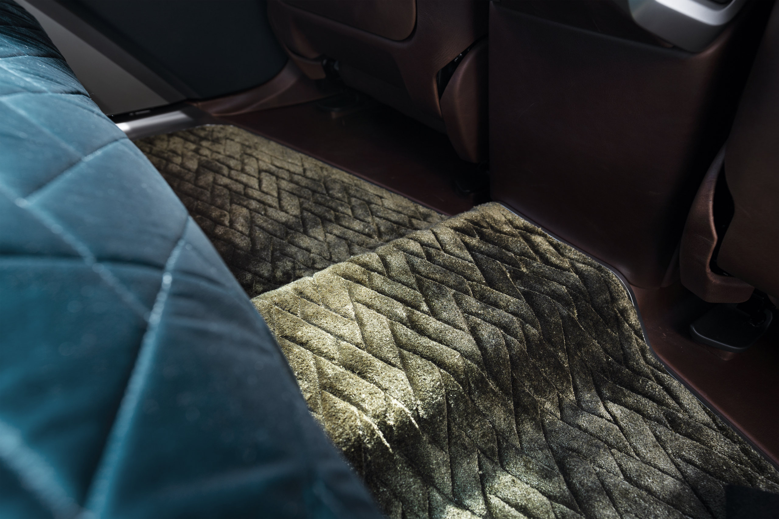 The actual layout—featuring an ultra-wide, curved screen just like the iX—isn’t too funky. I do dig the carbon-copper blend dash trim and “three-dimensional prism” headliner but the materials BMW has chosen to cover everything in are, let’s say, A Choice. BMW’s literature gives the impression that this was very much the intent but everything looks old and pre-worn somehow. There’s mahogany-colored leather up front and dark turquoise lines in the rear “lounge” area, which itself plays host to a piece of green carpet that looks like it was found in the dusty back corner of Munich’s local Goodwill.