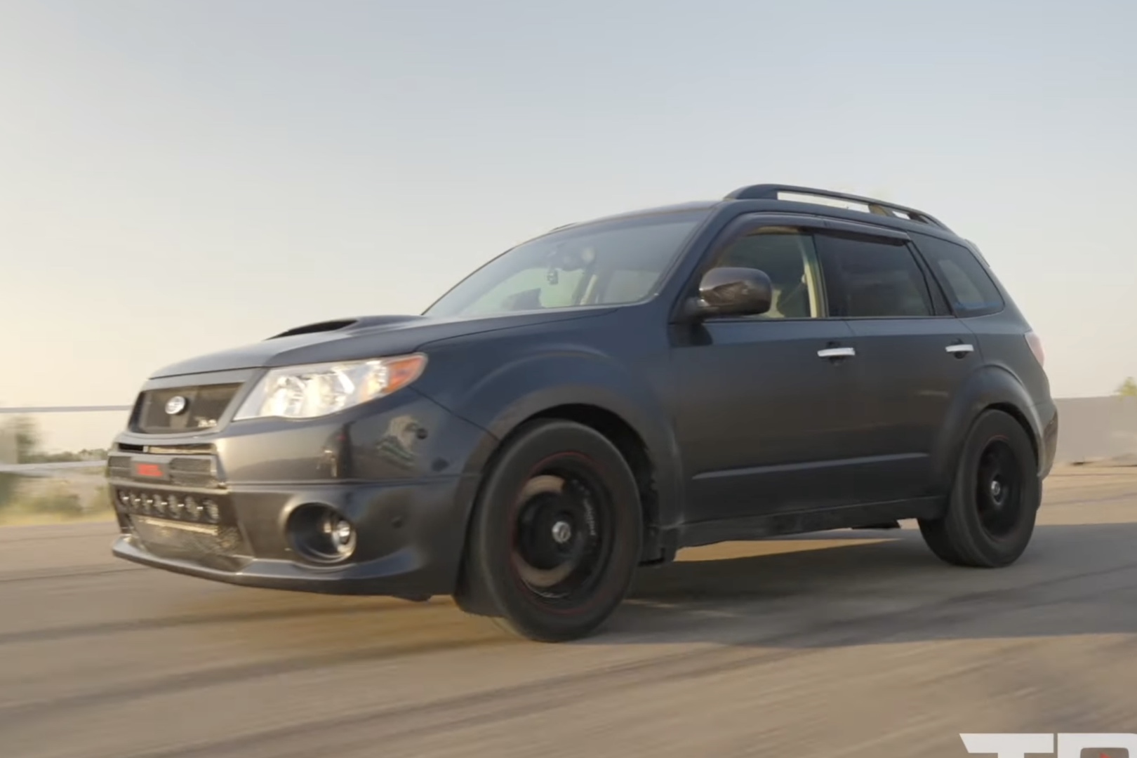 When you think of a car for the, uh, older population, you might think of something like a ’90s Buick, or one of the million or so completely interchangeable crossovers. My grandma, for example, drives a Subaru Forester. I’m not sure, though, that she’d be fond of the one just featured on That Racing Channel. See, the fella that owns this 2013 Forester decided to swap in a supercharged, 6.2-liter Cadillac V8.