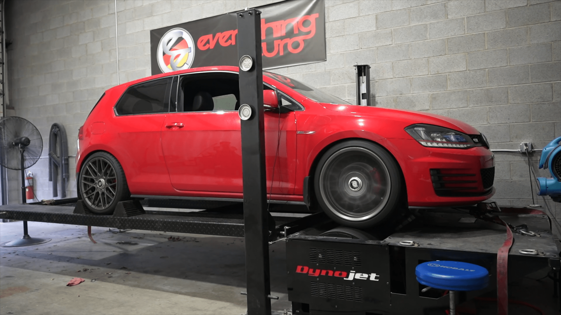 In the case of the 2015 GTI, once fitted with an upgraded high-pressure fuel pump and a flex-fuel sensor, a higher-powered ethanol-ready performance tune could be flashed into the car’s ECU. Once appropriately equipped, the car made 302 horsepower and 403 pound-feet of torque on 93 octane. Despite having race-grade E85 on hand, the team was unable to fully drain the tank of 93 octane gas. Thus, when topped off, the GTI’s tank had an ethanol content of 57 percent. Even at this level, though, figures bumped up to 335 horsepower and 434 pound-feet of torque respectively.