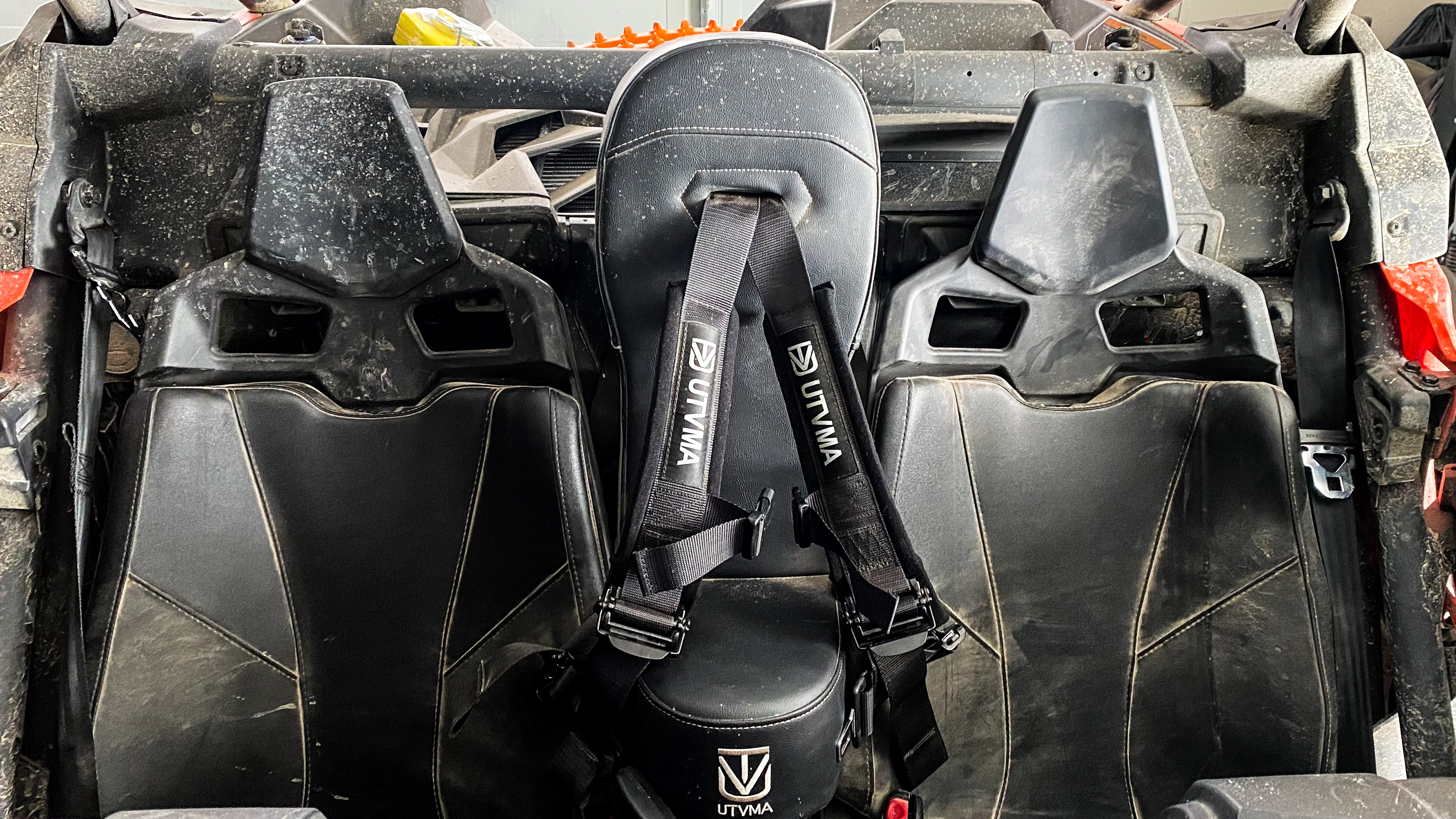 There was just one issue with the Maverick when we bought it, however, and that was it only came with four seats. Well, see, I have three kids and a wife, and four seats don’t exactly work. I initially planned on swapping out the rear two seats for a bench-seat conversion, but that would’ve turned into more of a hassle than it was worth, so I called up UTV Mountain Accessories right over the mountains from my house and had them send me a jump seat that mounts in between the two rear sport seats.
