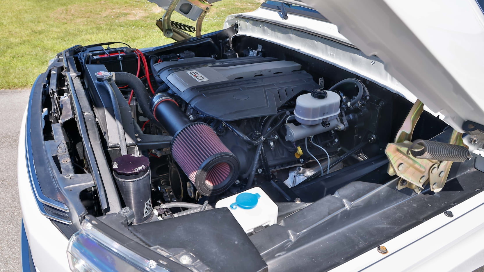Under the hood is a brand new Ford Performance 5.0-liter Coyote V8, which is mated to a Ford six-speed automatic transmission. In case you’re wondering, yes, it can also put in the work, as it’s retained four-wheel-drive thanks to a Ford F-150 Raptor transfer case, according to the builders. The truck is also modernized with custom-built suspension, eight-lug axles with lockers, and disc brakes at all four corners.
