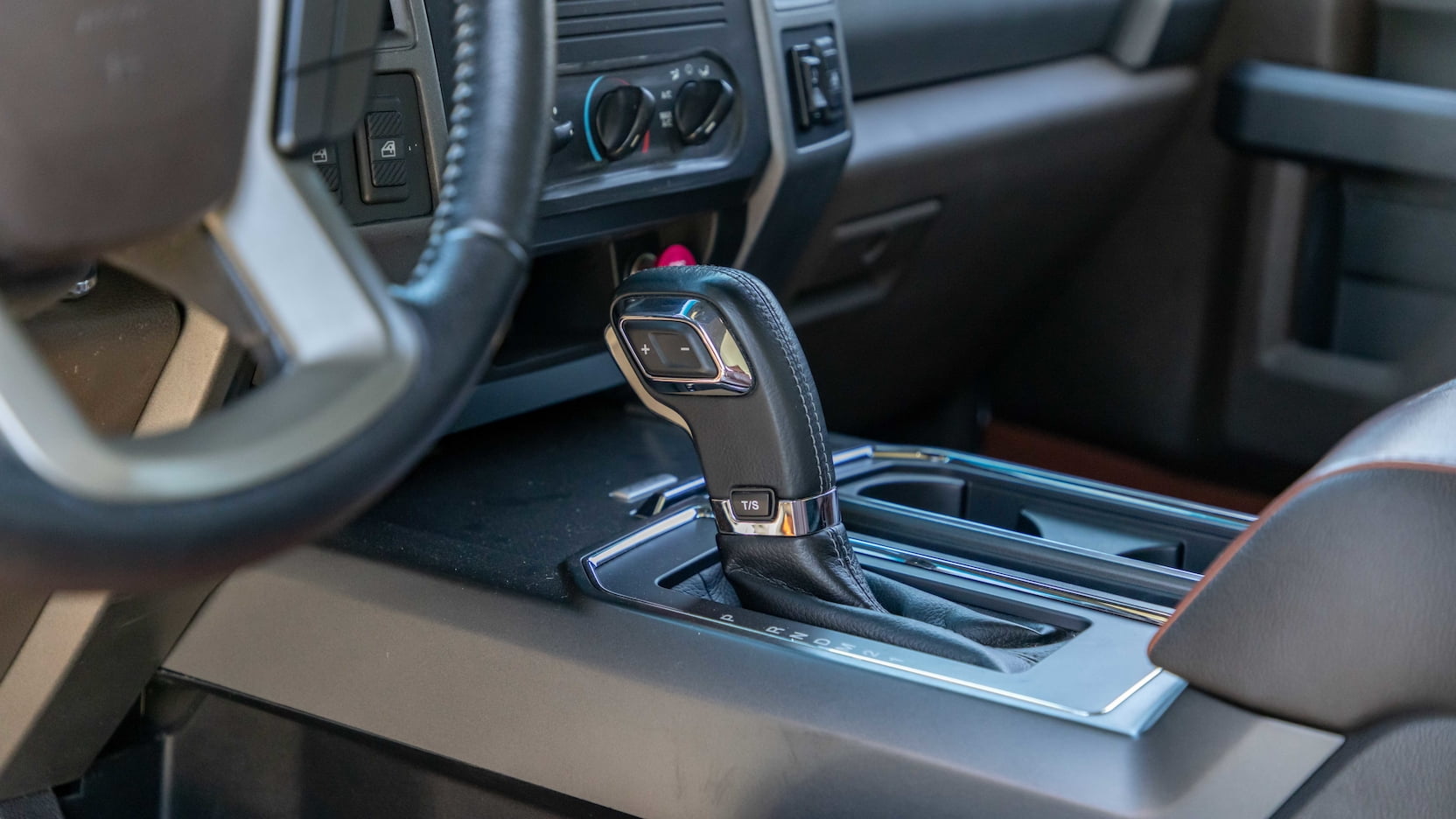 The interior has been redone by installing powered components from one of Ford’s King Ranch edition trucks. The two-tone leather seats add a premium look and feel to the off-road-capable truck, and complement the modern amenities within the old platform.