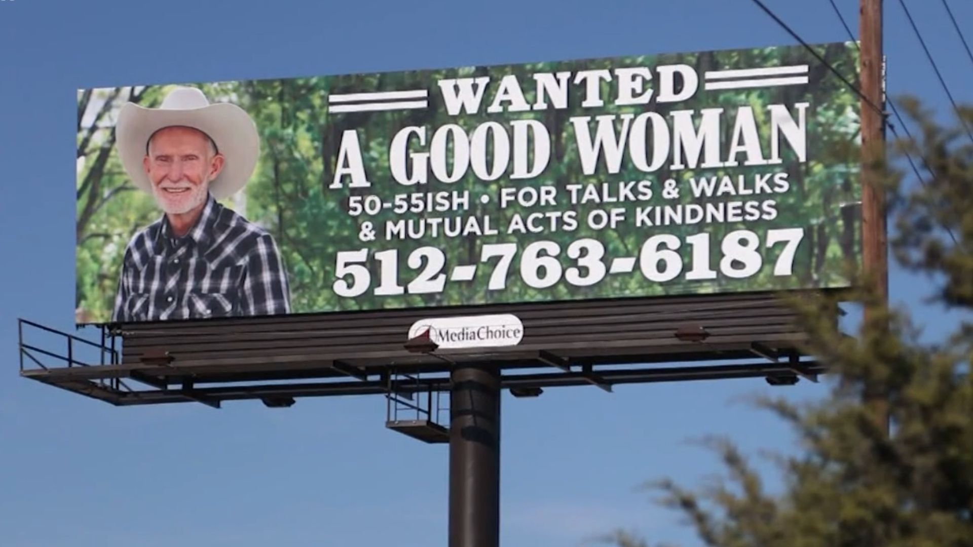 Bays, who moved to Texas from Washington in June of this year, is 66 and has no patience for swiping right. Or left. Or whatever. He’s a spec builder and contractor and works long days, so he doesn’t want to mess with complicated search methods. Bays decided to place a billboard with the headline “Wanted: A good woman, 50-55ish, for talks & walks & mutual acts of kindness” and his photo in large format and is hoping for the best.