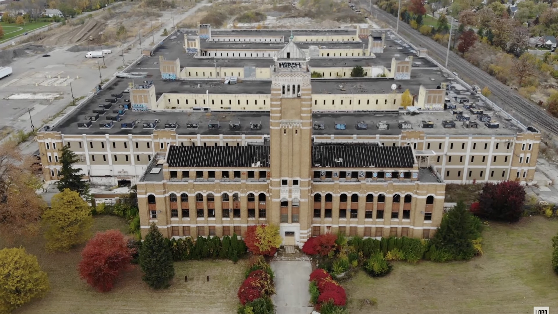 This facility was built in 1926 and 1927 by the Electric Refrigeration Corporation, a forerunner of the Nash-Kelvinator Corporation. Nash joined with Hudson to spawn AMC, which used the building as its World Headquarters from 1954 to 1975, before migrating to Southfield, Michigan. Following Chrysler’s buyout of AMC, USA Today reports the building served as an engineering center for Dodge and Jeep trucks until 2009 when those operations were relocated. In 2010, the property was sold according to Left Lane News, first falling into the hands of a scrapper before being foreclosed and resold in 2015 for a mere $500.