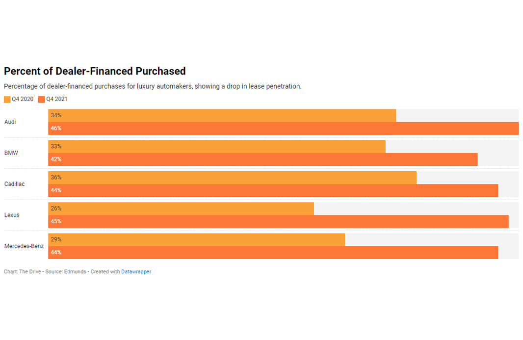 “Leasing and luxury historically have gone hand in hand, but that trend is drifting away as automakers have less reason to incentivize leasing amid inventory shortages,” said Edmunds’ Executive Director of Insights, Jessica Caldwell. “Affluent luxury shoppers are likely feeling comfortable with financing their pricey purchases instead since interest rates are so low.”