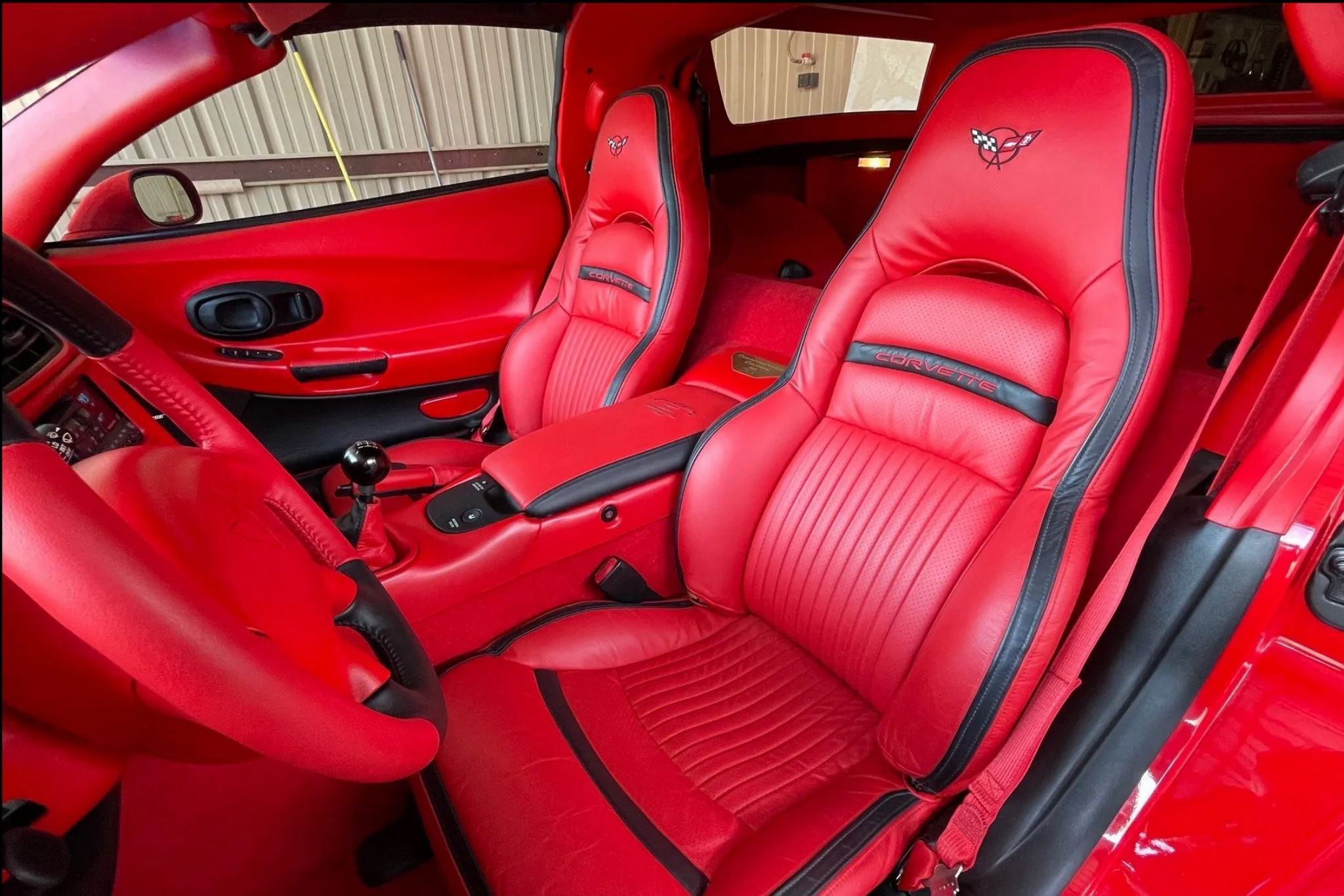 This vehicle makes perfect sense if you’re really, really, really into red leather. The steering wheel is covered in crimson, as are the sport bucket seats, console, and brake calipers. Its unusual body is finished in red as well, sitting on Z06-style wheels wrapped in Nitto NT555 rubber.