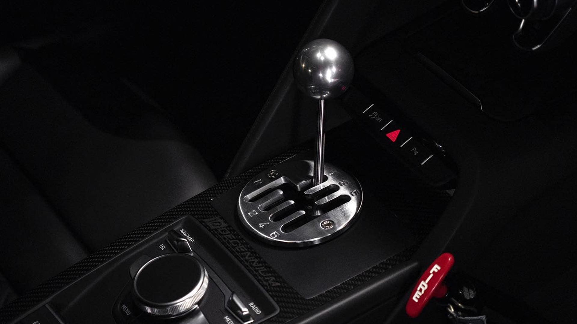 The shop was able to fit a six-speed manual transmission in place of the factory dual-clutch auto, eliminating that pesky “problem” that manual purists found with the current-gen R8. And on top of featuring a proper row-your-own gearbox, Underground was sure to make it properly gated, meaning that click-clack is back, baby.