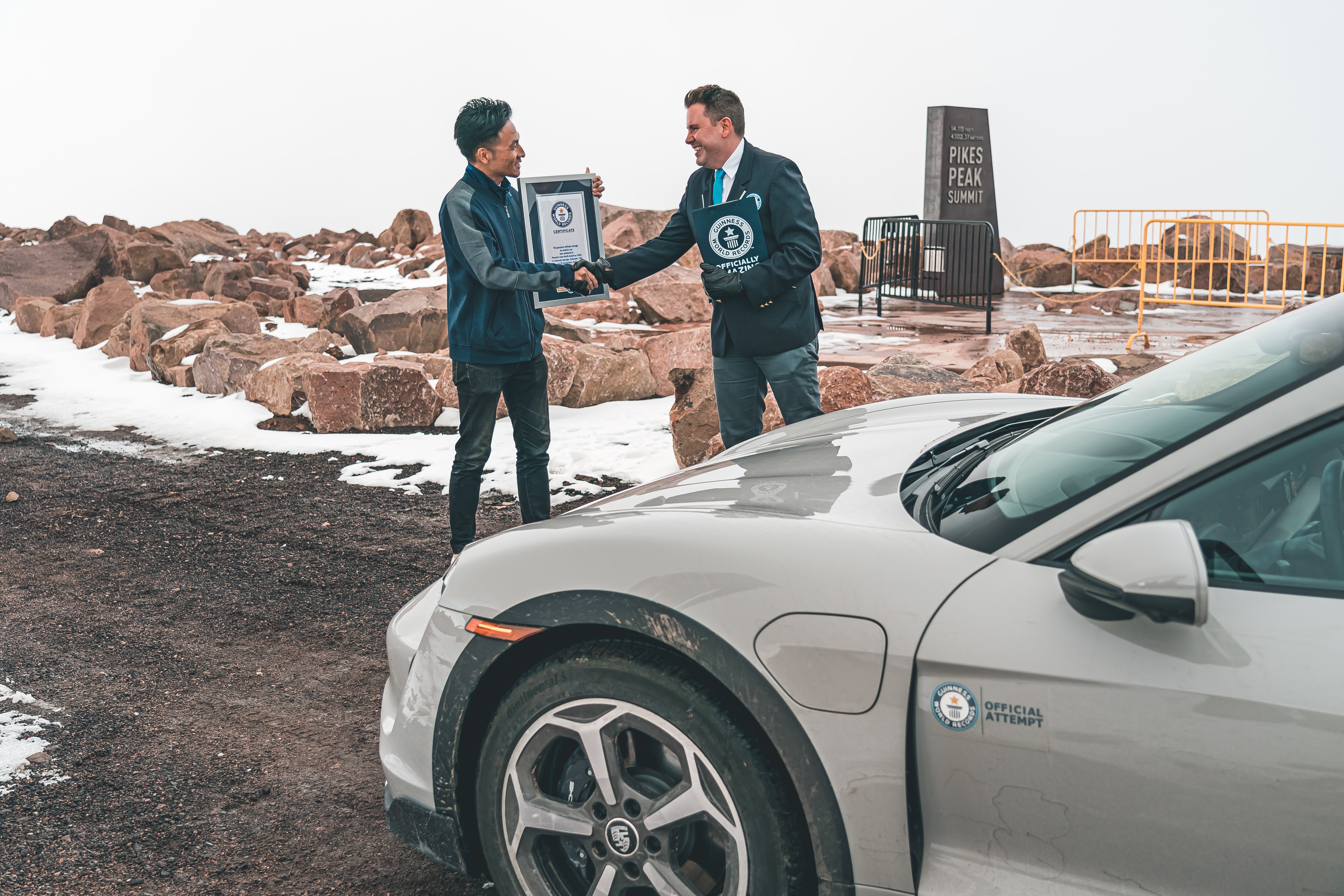 The whole feat took 33 hours, 48 minutes and by the end, the team was worried about snow closing in at the mountaintop. Oxygen levels fell by 40 percent from the bottom of the mine to the top of Pikes Peak and relatively extreme weather toward the summit looked set to jeopardize it. However, 2020 Pikes Peak International Hill Climb class winner Dai Yoshihara knows the route well enough that he brought the Taycan home and took the record for the whole team.