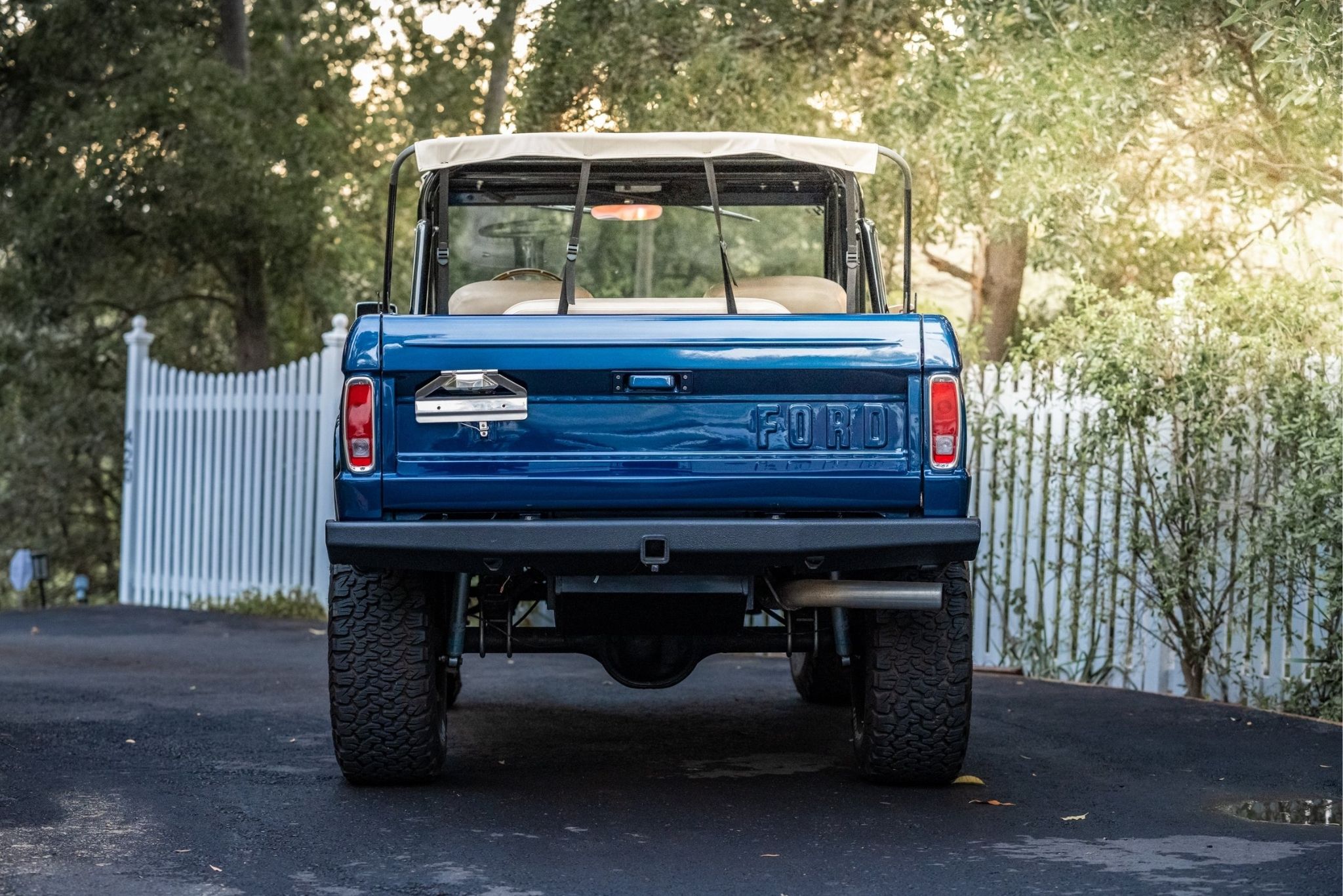 Originally, the 1970 Bronco was offered with a 105-hp 2.8-liter six-cylinder or an optional 4.9-liter V8 running with 205 horses. Button’s Bronco is equipped with a naturally aspirated 4.9-liter V8 making an estimated 300 horsepower, and the Bronco has been customized with a number of options like a Fitech fuel injection, an Edelbrock filter, and an MSD ignition kit with push-button start. The engine is paired with a three-speed automatic transmission, and a Borgeson power steering rack and new polished steering column were added to the mix along with a wood-trimmed steering wheel.
