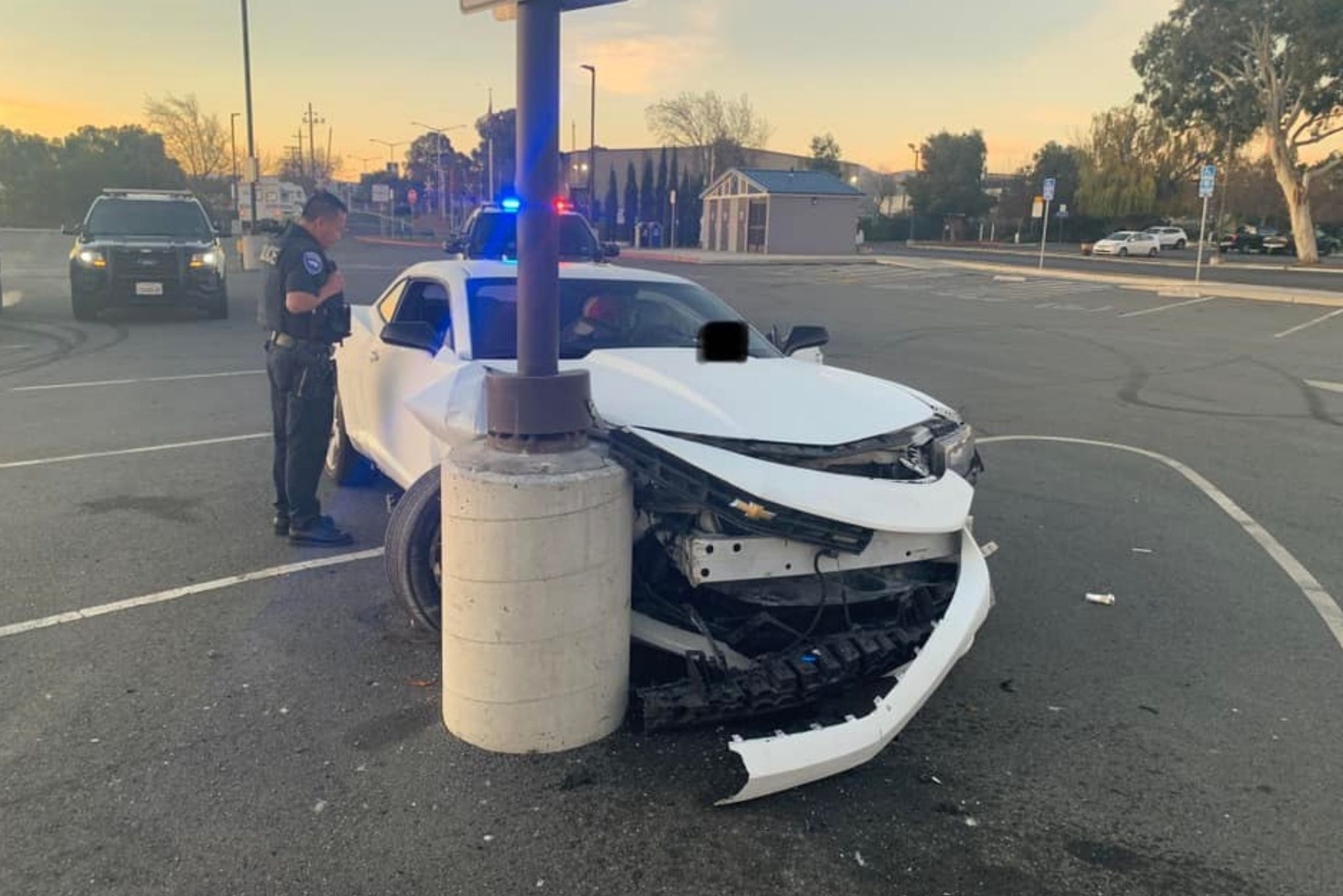 In the wee hours of the morning on January 11, officers arrived to find the smashed-up Chevrolet in poor shape after a drifting maneuver went awry. Security footage shows the Camaro speeding around in circles before skidding into the pole, rendering the vehicle undriveable. The driver was apparently fine, since the Antioch Police reported that he attempted to flee on foot. He didn’t get far and was quickly apprehended and arrested for reckless driving. As a consolation “prize” to his failed sideshow, the suspect was also slapped with a 30-day hold on his Camaro. Not that he was going to be driving it anywhere in that condition.