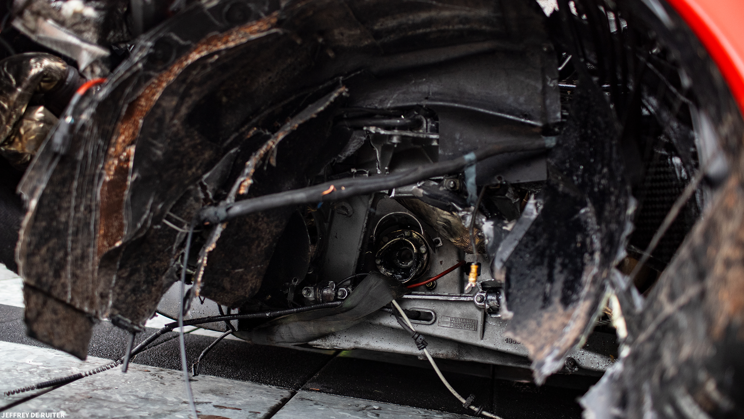 Photos come us courtesy of Instagrammer @jeffrey_de_ruiter_photography, who snapped the pictures of the Ferrari Enzo’s recovery via trailer. Jeffrey does a great job of capturing the huge level of damage, particularly at the rear of the vehicle. The rear bumper is ripped in two, while the front clip appears to have been badly hit as well. The entire back half of the car appears to be hanging off, as evidenced by the view from the driver’s side after the crash.