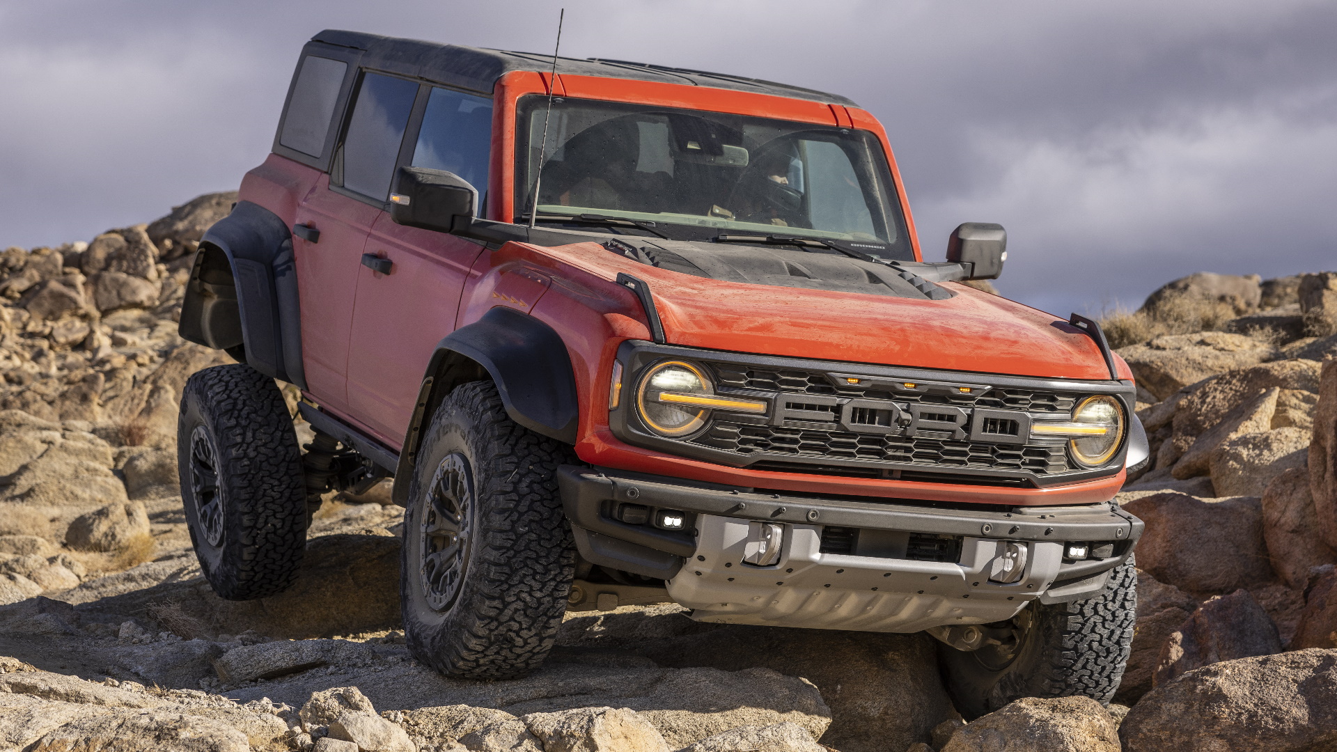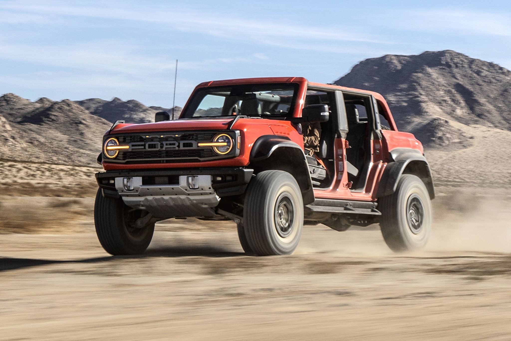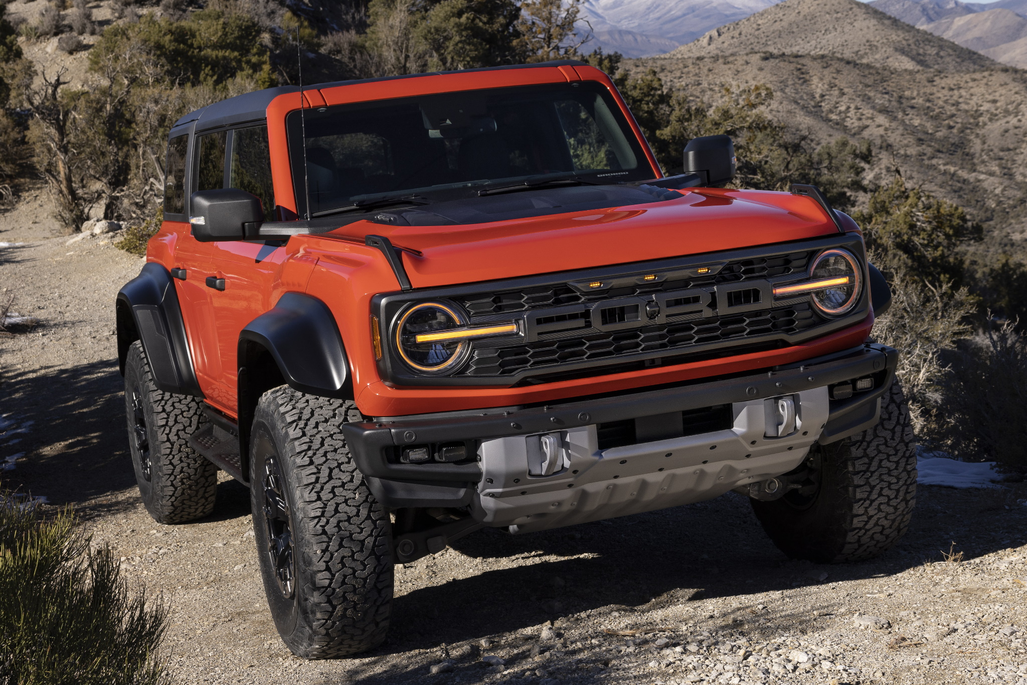 Everything gets chunkier, which some people will love and some people will hate. The body line that runs from front to back on regular Broncos now only covers the length of the Raptor’s doors, and the area around the front grille is bulged out considerably. The boxed fenders on the Raptor get cut up to accommodate some angry-looking vents as well, which are necessary for cooling the brakes that are shared with the F-150 Raptor. It’s not poorly done—far from it—but it does sort of mess with the Bronco’s regular handsomeness. It’s such a well-proportioned truck, especially in two-door form, that it’s hard to improve. That’s suffering from success, I suppose.