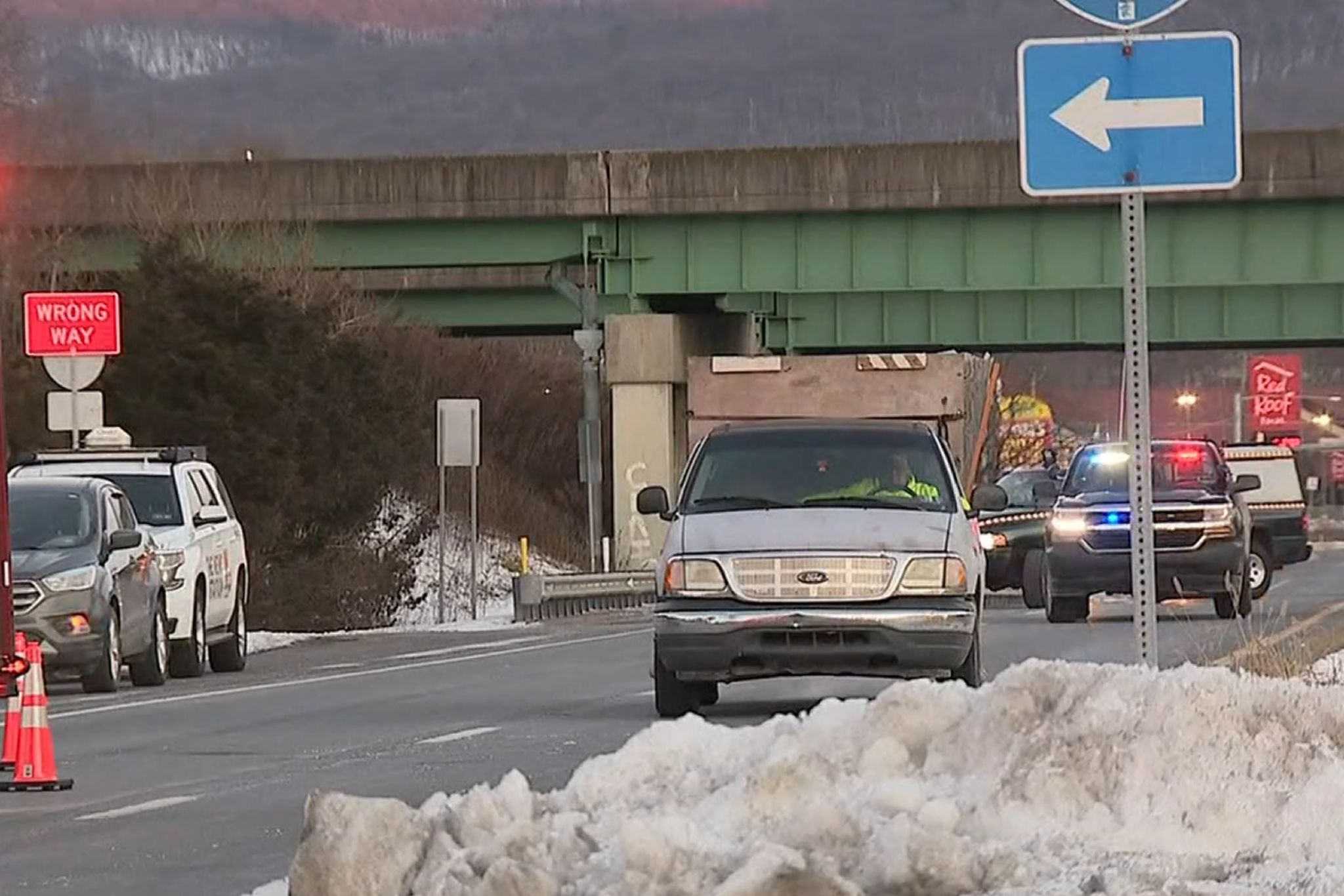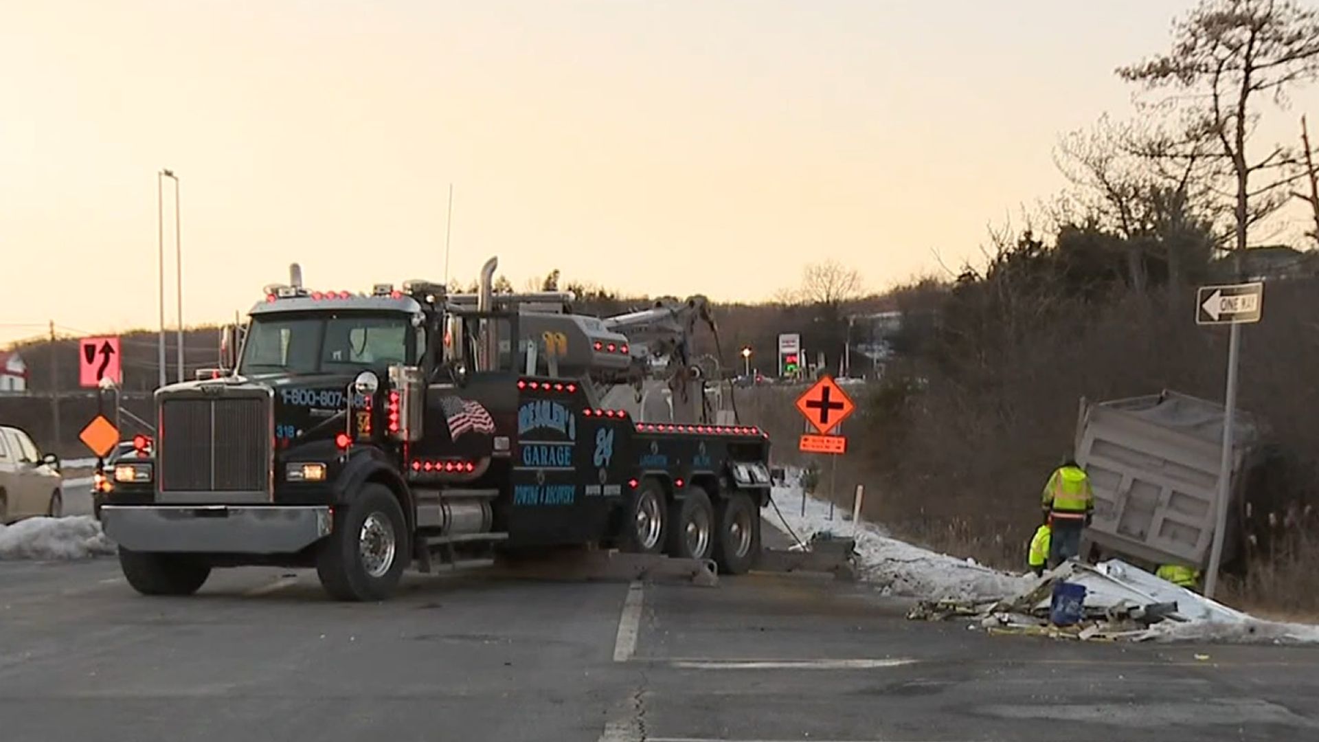 About two and a half hours northwest of Philadelphia near Interstate 80, a truck loaded with monkeys attempted to cross highway 54. According to a local eyewitness, a dump truck hit the trailer and both vehicles skidded off the road, stopping at a tree. More than a dozen crates were dropped from the trailer, and some monkeys grabbed their chance to disappear into the woods.