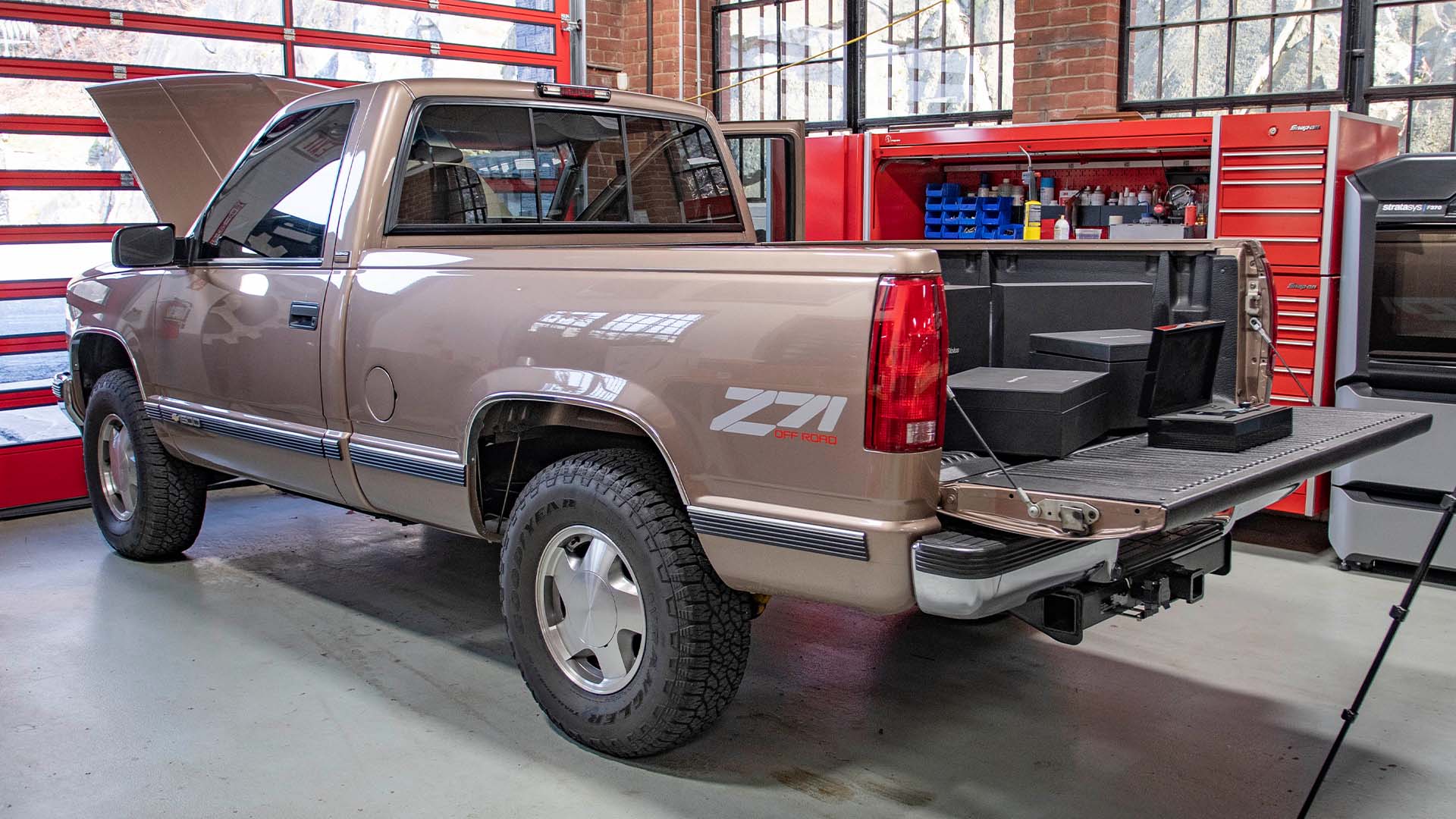 That’s clear to see from the wonderfully preserved cloth seats to the somehow-uncracked dash. Underneath the carpet is stupid clean, too, which you just don’t expect to see on a truck that was built during Bill Clinton’s presidency. It’s got a tried-and-true 350 V8 with throttle body injection, a four-speed automatic, and a two-speed transfer case. Consider its condition with what’s arguably the best spec for a Chevy of this era and you’ve got the perfect pickup platform to use.