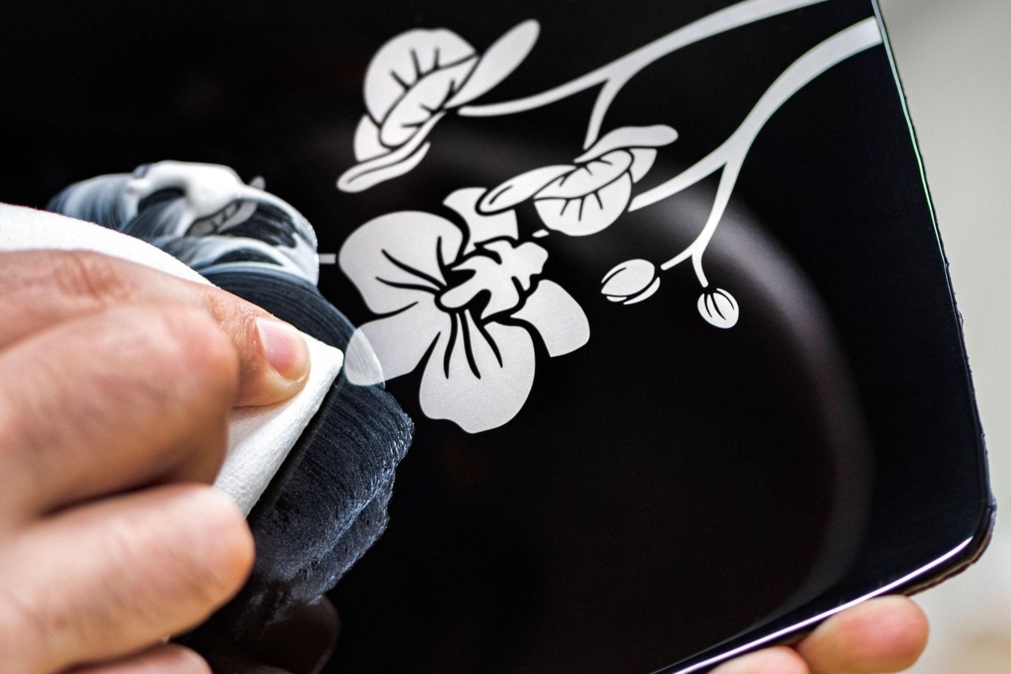 Rolls-Royce Designer Yohan Benchetrit added orchid-inspired picnic table inlays behind the front seat with a layer of orchids set into the Piano Black veneer. Even the treadplates are unique, deleting the text in favor of artwork.