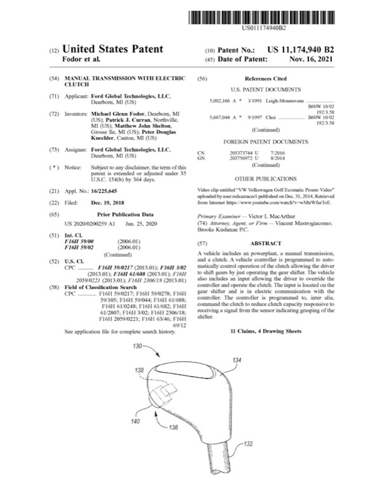 Such was revealed in a patent application filed by Ford with the United States Patent and Trademark Office (USPTO) in December 2018, though the document’s contents were only published last November, and discovered by Muscle Cars & Trucks this month. The patent is stated to be for a “manual transmission with [an] electric clutch,” one where the clutch release hydraulics are pressurized by a master cylinder operated by an electronic actuator. This actuator receives signals to disengage either from a pressure sensor on the H-pattern shifter or from an “override” attached to the clutch pedal, which would be connected to the clutch only electronically.