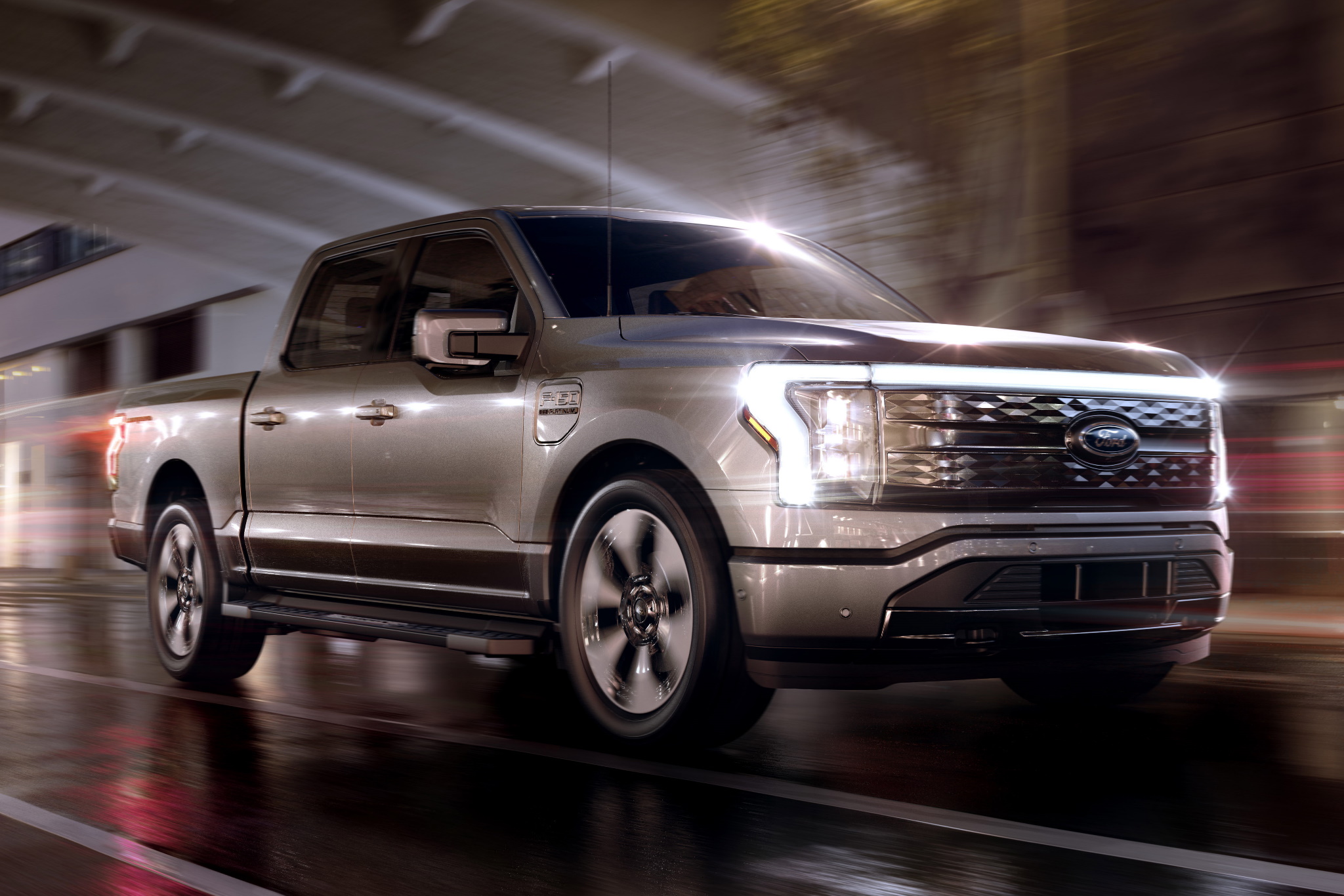 To be clear, we’ll have to wait and see for more details of both vehicles to come out before we can definitely say why the Ford is so much lighter. But between the third motor in the drivetrain and an extra car’s worth of batteries mounted in the floor, there are a few obvious reasons as to why the Ford is the slimmer of the two pickups.