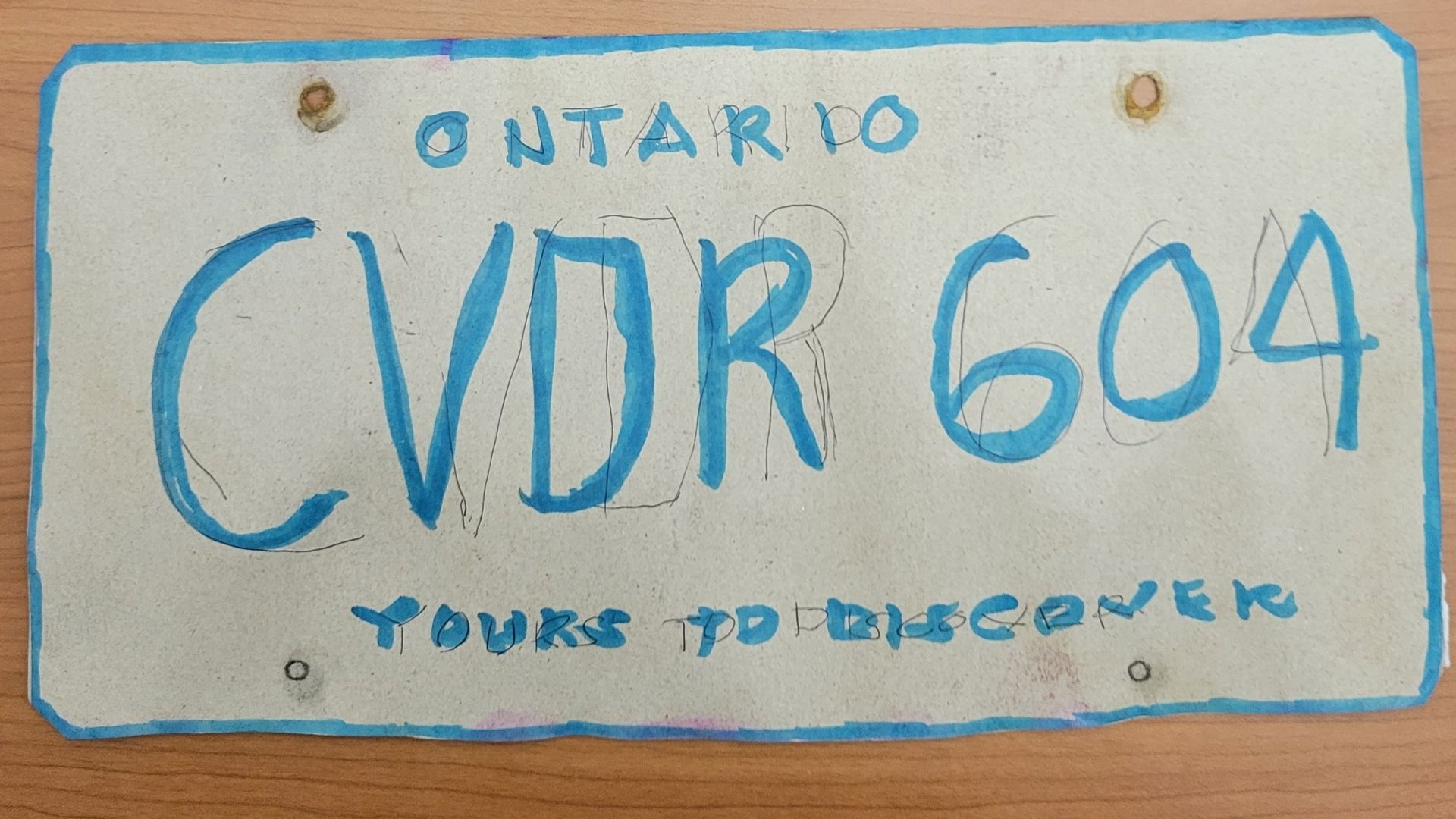The 49-year-old was apparently breaking his curfew, which was a condition of his release as related to a previous crime of some sort. According to CityNews in Toronto, the driver with questionable artistic talent was charged with failing to comply with a court order, possession of property obtained by crime, driving without a license, and using a plate not authorized for the vehicle to which it was attached. Homemade plates are not considered authorized. Who knew?