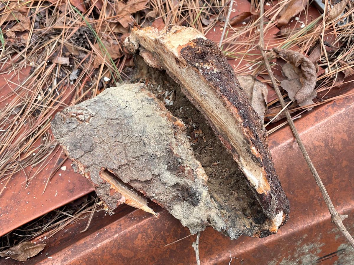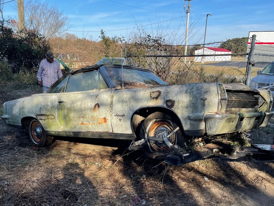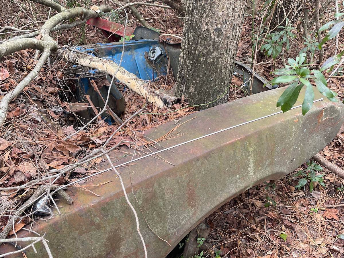 “This car has been sitting twenty-plus years and a tree grew up through the wheel well,” explained Robbie Collier, who’s selling off his departed father’s former stock as part of his estate. “The tree grew from under the car between the tire and the front wheel well. They—father and son from Florida—supported the car and sawed and pulled the rear wheel off. Then there was much more sawing. They went through two chainsaw chains and bars because of contacting metal. The tree actually became a part of the lip of the fender.”