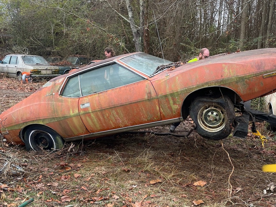 One of the first big extractions was posted to Collier Motors AMC’s Facebook page, outlining the removal of a 1970 AMC Javelin whose rear fender had begun to be assimilated by a tree. It had sat for more than two decades when a father-son team from Florida showed up to buy it, and they went through hell and high water to claim their prize.