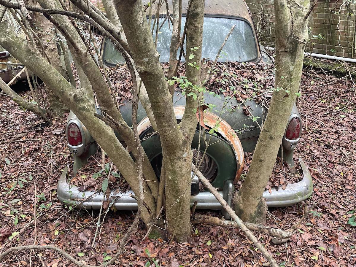 Despite the American Motors Corporation being dead for more than 35 years, the remains of its last dealership, Collier Motors AMC, still stand in North Carolina, with hundreds of cars left on the lot. They sat almost forgotten until last year, when people began flocking across the country to buy its restorable classics and parts cars, which visitors say are in better shape than pictures let on. Of course, decades of sitting still have allowed nature to begin reclaiming some cars, many of which the family that owns the property has had to haul out of the underbrush. Or, in the case of more than a few cars lately, literally saw them out of trees.