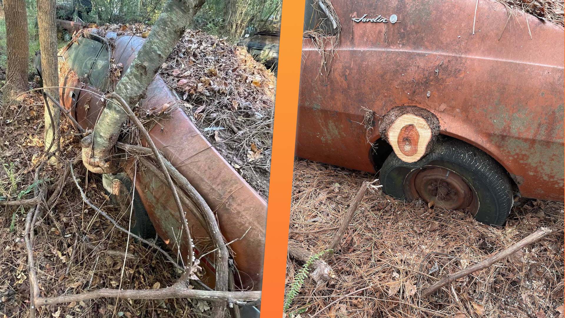 Despite the American Motors Corporation being dead for more than 35 years, the remains of its last dealership, Collier Motors AMC, still stand in North Carolina, with hundreds of cars left on the lot. They sat almost forgotten until last year, when people began flocking across the country to buy its restorable classics and parts cars, which visitors say are in better shape than pictures let on. Of course, decades of sitting still have allowed nature to begin reclaiming some cars, many of which the family that owns the property has had to haul out of the underbrush. Or, in the case of more than a few cars lately, literally saw them out of trees.