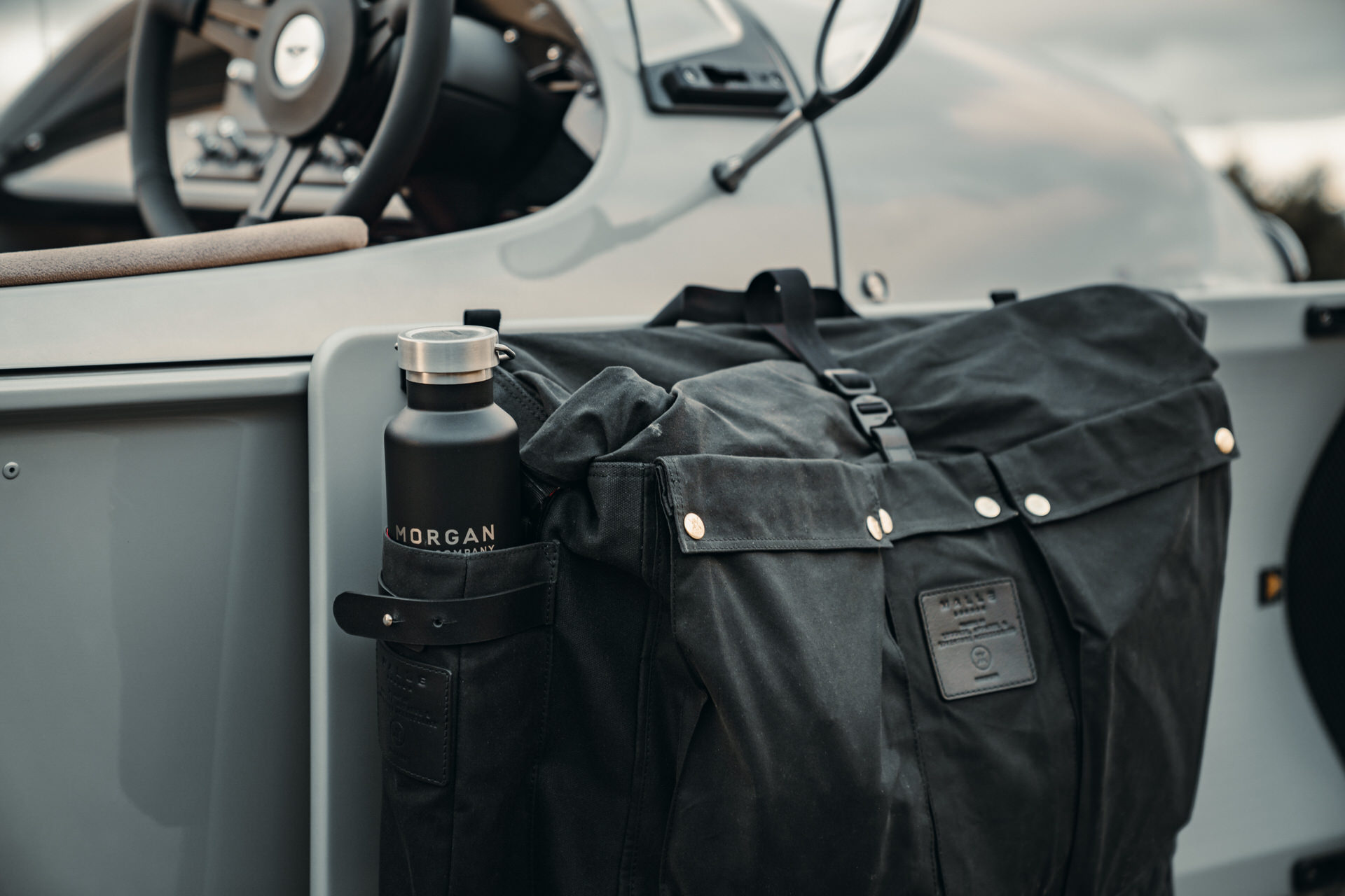Speaking of design, the Super 3 brings Morgan’s aesthetic to a less historic era by tipping its design cap to mid-to-late century jets (whereas the 3 Wheeler was modeled after three-wheeled cars of the 1920s). Those rectangular diffuser plates down the sides not only incorporate radiators and contribute to cooling but are also a convenient place to strap luggage (thanks to “Exo” side racks) and put stickers on. These “side blades” can either be painted to match the rest of the body or in a contrasting color, just like the side blades on an Audi R8.