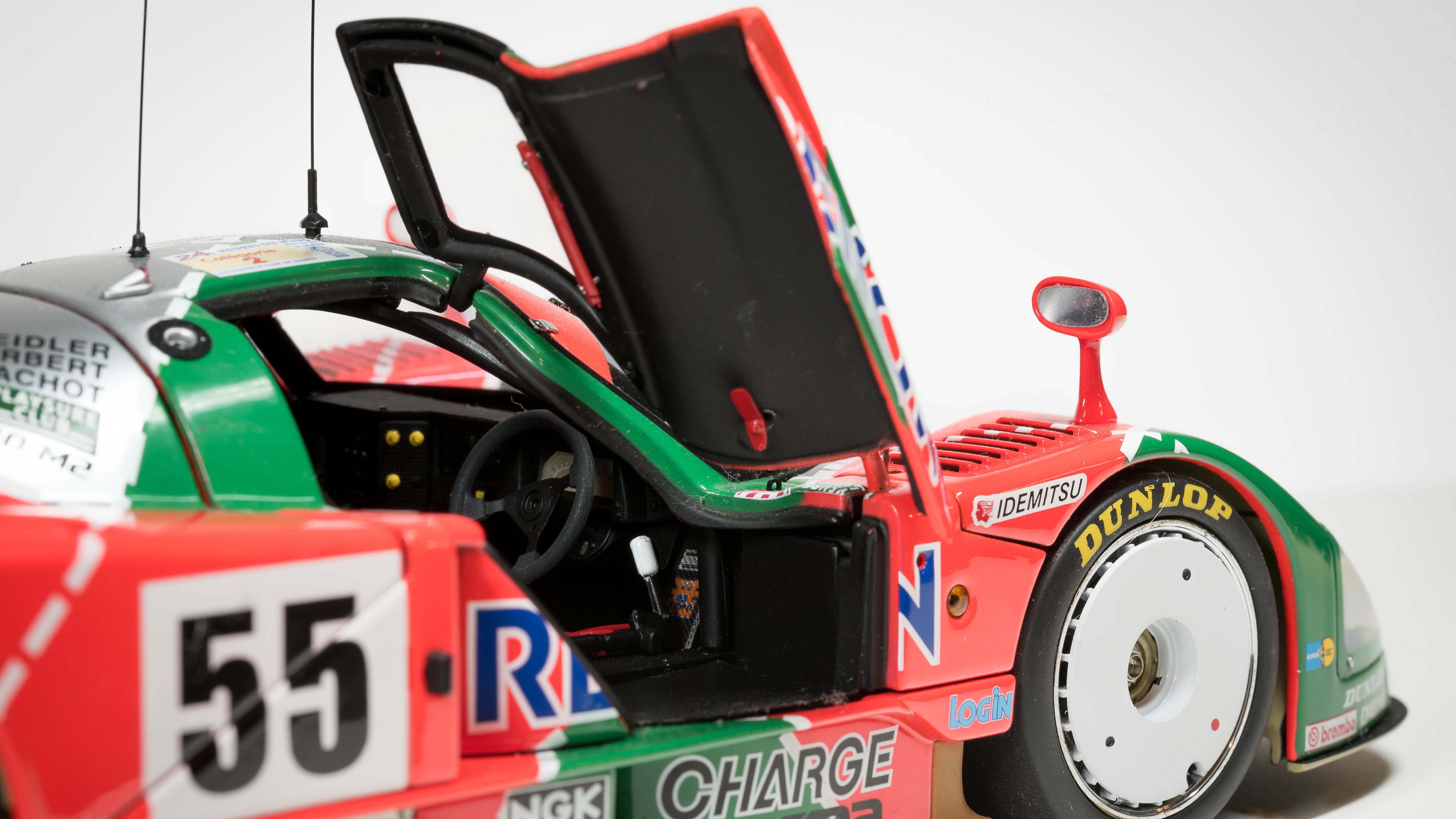 I had trawled strategy guides trying to find the “best purchase” for the LMP-classed races that open up later in the game, and by paying close attention to the date system, it was possible to find a series of all-black classic Le Mans prototype cars in the used shops for a fraction of their normal purchase price. The best of these, every guide told me, was Mazda’s legendary four-rotor 1992 winner, the 787B. The 787B never was campaigned in real life with a black paint job, but the game’s mystique and influence was so strong that diecast manufacturer AutoArt released a line of the game-specific cars in their all-black liveries.