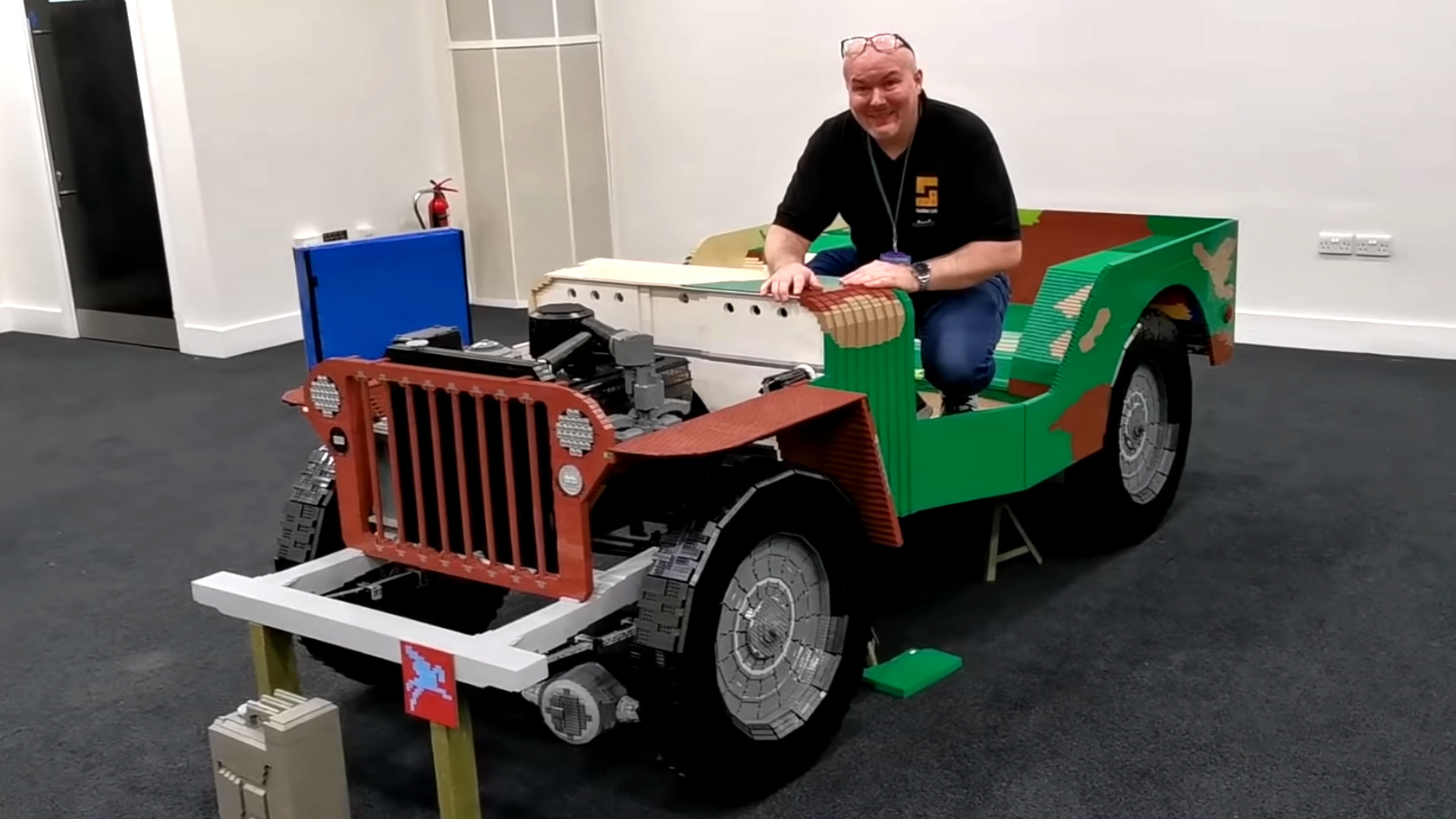 The Jeep build itself consists of over 120,000 pieces, and was built by Simon Blackburn, Kevin Hyatt, and Colin Smithson over a period of two years. The men are members of the Sheffield LEGO User Group, which formed in 2015 as the self-described group of AFOLs (Adult Fans of LEGO) began to get together for regular meetups.