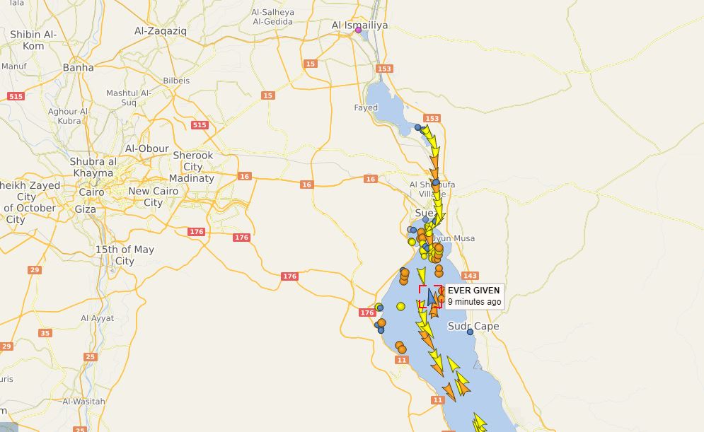 We’ll start with the ship that captured the attention of the entire world almost one year ago. The Ever Given is currently at the southern entrance to the Suez, waiting to pass through. It set out from Malaysia 11 days ago and should be passing through the canal, which handles roughly 12 percent of total global trade per year. That’s a fairly common thing to do, after all, as the Suez Canal sees an average of 50 ships and anywhere from $3 billion to $9 billion worth of cargo per day. It’s been a vital channel for world commerce since its opening in 1869.
